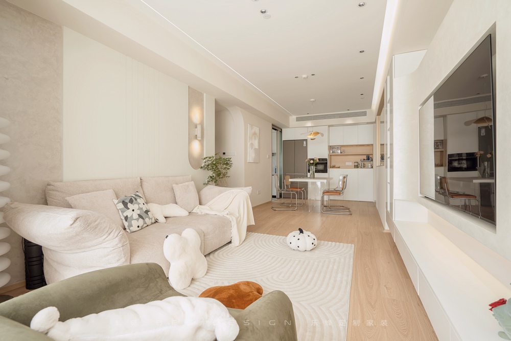 - 客廳采用多個空間的融合,既獲得了視覺上的開闊,也確保了與三者的隨時互動,這樣聯通且開放的空間,能給人更好的居住體驗。