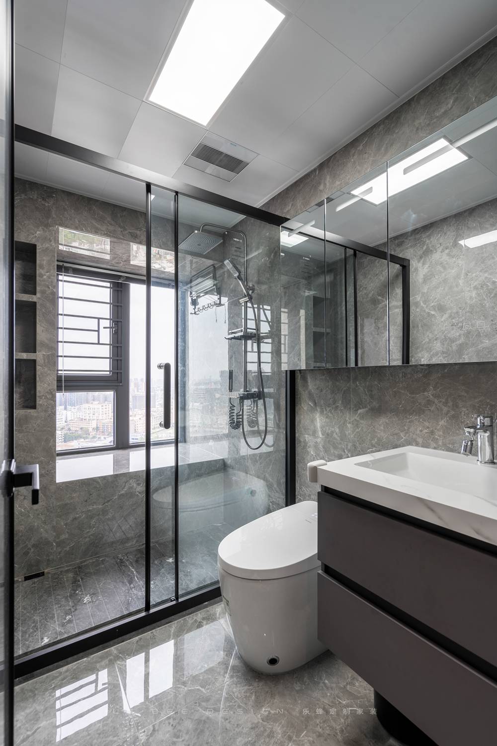 - 衛生間實景圖 - 衛生間空間充裕設計為干濕分離,鏡面柜是解決衛生間收納的最好的辦法之一。飄窗帶來了優越的采光和充足的置物空間。為了實現空間利用最大化,我們在淋浴區墻面設計了壁龕,方便淋浴時物品的取放。