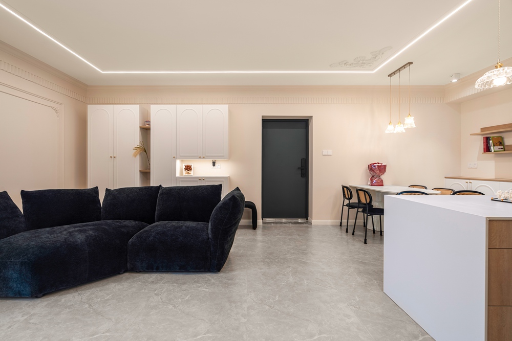 本案業主是一位女性業主。考慮到業主是建筑師,所以設計在家中融入建筑元素。因此設計結合了致敬斯卡帕大師的手法與簡約法式,豐富了空間層次感。我們還根據業主的氣質、風格喜好、儲物需求以及家中的采光、結構特色對業主的原始戶型進行了設計,讓奶油、法式很好的融合在了一起,同時我們還捕捉到業主那可愛的少女心在臥室設計中融入了進去,接下來我們一起去欣賞一下業主優雅可愛的家吧!