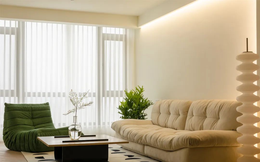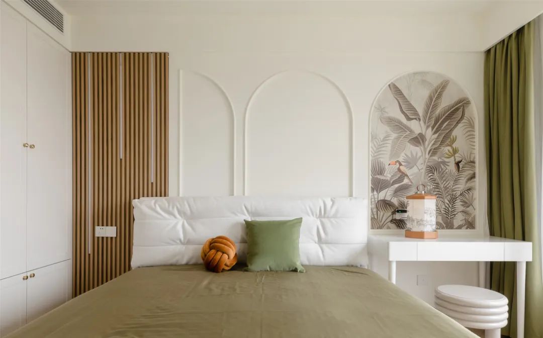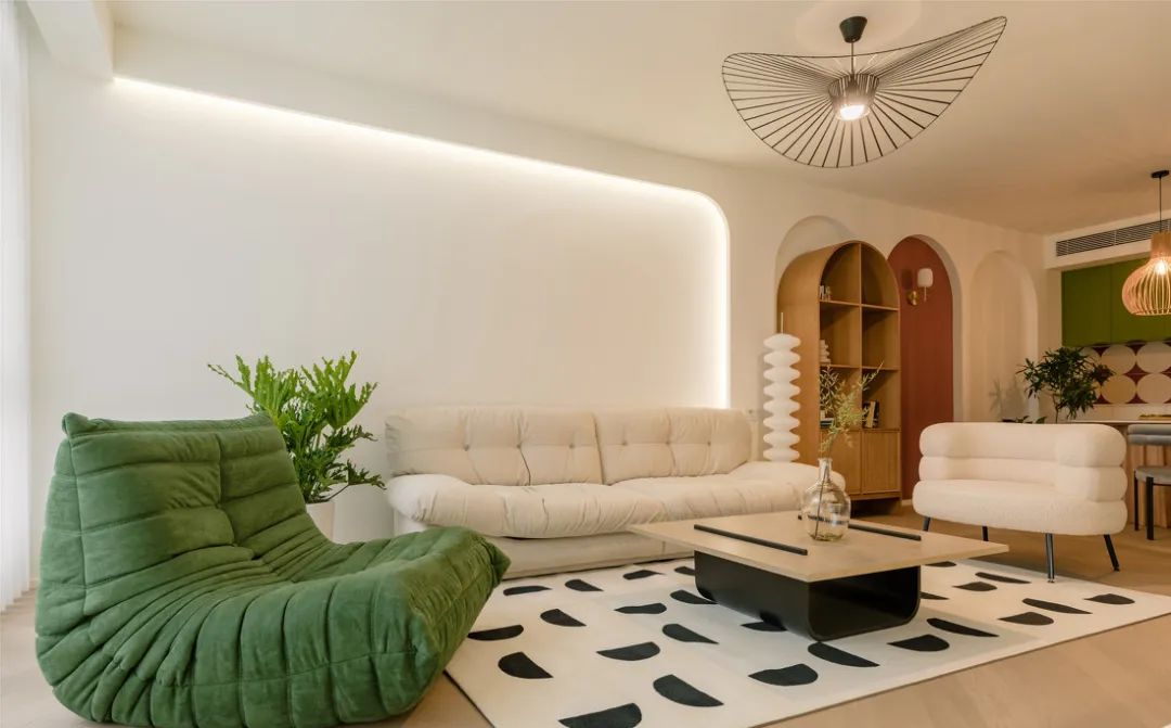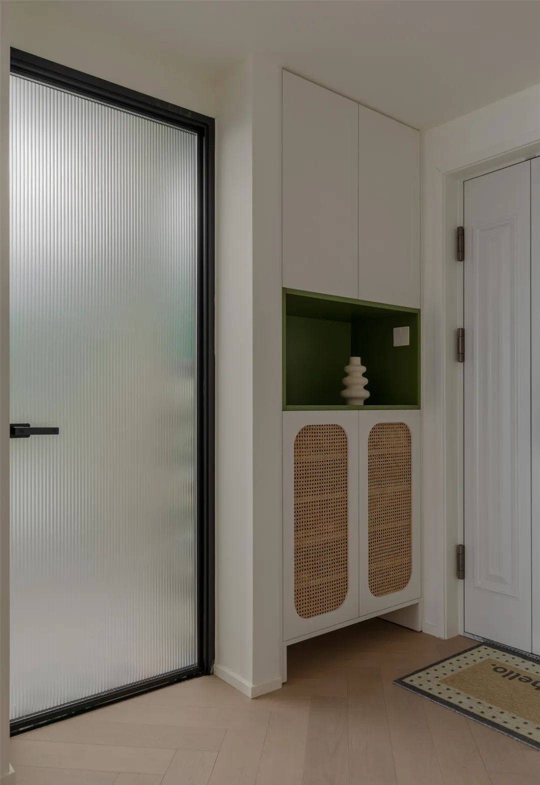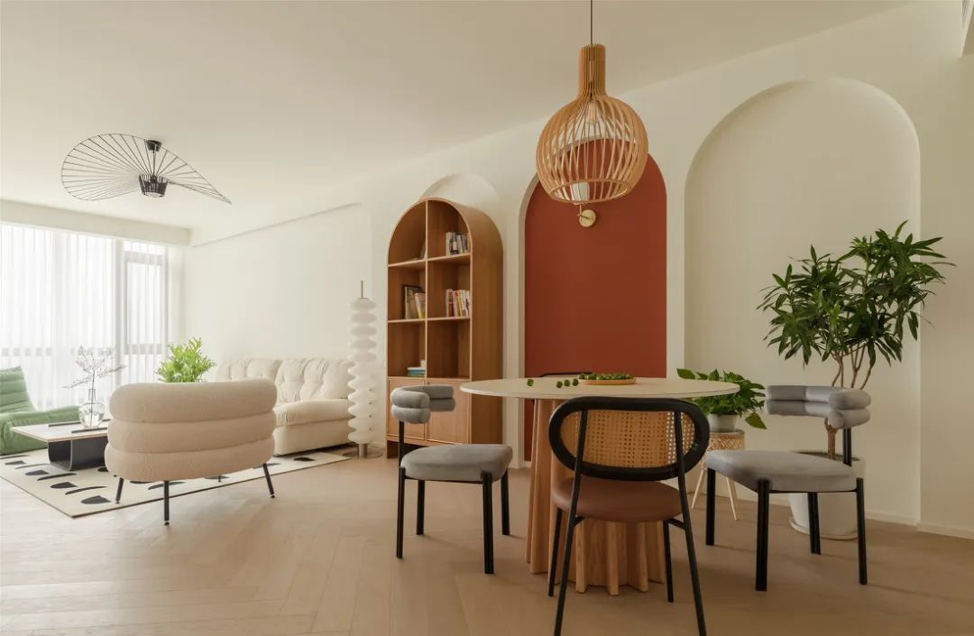 本案屋主是從事互聯(lián)網(wǎng)工作的80后小姐姐,喜歡閱讀,樂于分享生活是她給自己的標(biāo)簽。這套兩居室的老房子,大多時候是她一個人的獨(dú)處空間,父母只是偶來小住,因此整屋的改造,會更聚焦屋主本身的需求。老房承重墻居多,限制了大規(guī)模的拆改,我們僅對狹長的廚房、隱私感欠缺的臥室,進(jìn)行了修正,消除空間的消極感,讓公共空間保持開闊寬敞,休息區(qū)則私密安靜。在整屋風(fēng)格的定位上,我們尊重屋主的喜好,融入藤編、花磚、拱門等具有鮮明南洋風(fēng)格的設(shè)計元素,同時借借助肌理感的藝術(shù)涂料,引入侘寂風(fēng)的質(zhì)樸感,下面我們一起走進(jìn)這個簡約生動,又充滿異域風(fēng)情的小家吧!