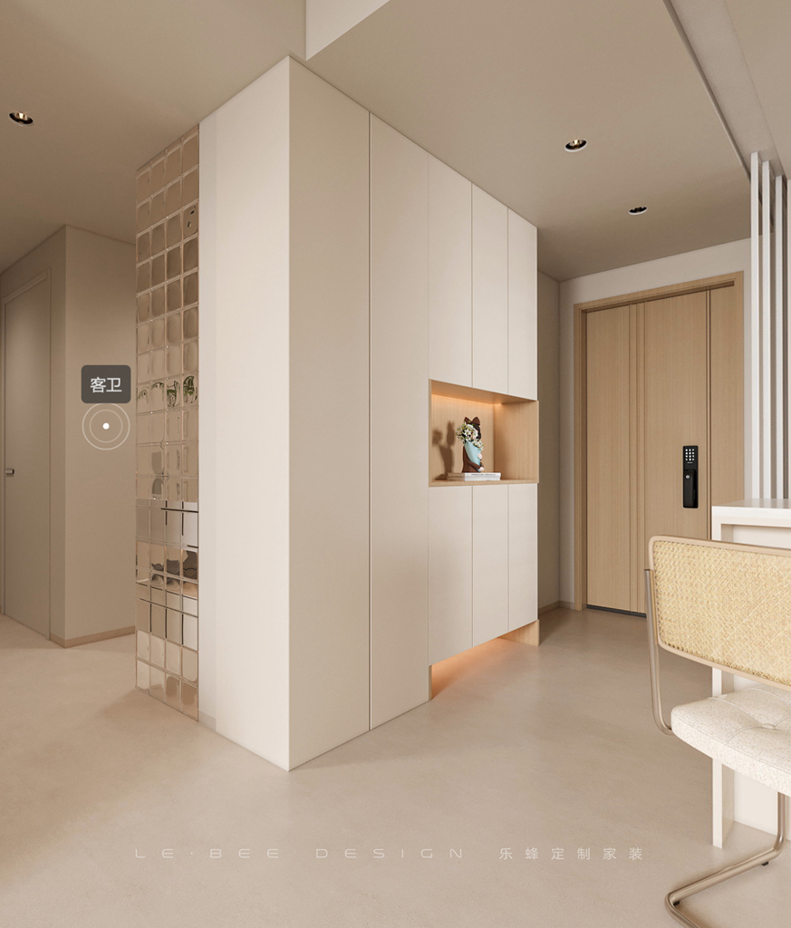 次衛采用了三室分離設計,洗漱臺使用半開放式玻璃磚作為隔斷,獨特而別致。