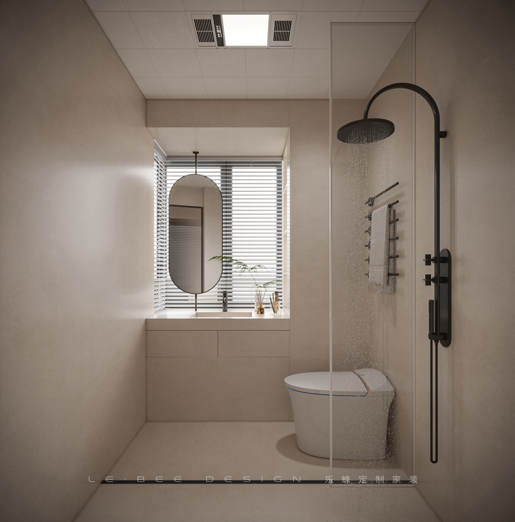 懸空洗漱臺和綠植的點綴,將整個空間裝點得清新自然。鏡面暖光燈照亮著次衛的每一個角落,提供舒適的洗滌體驗。