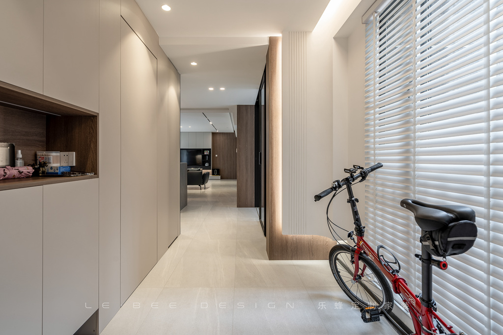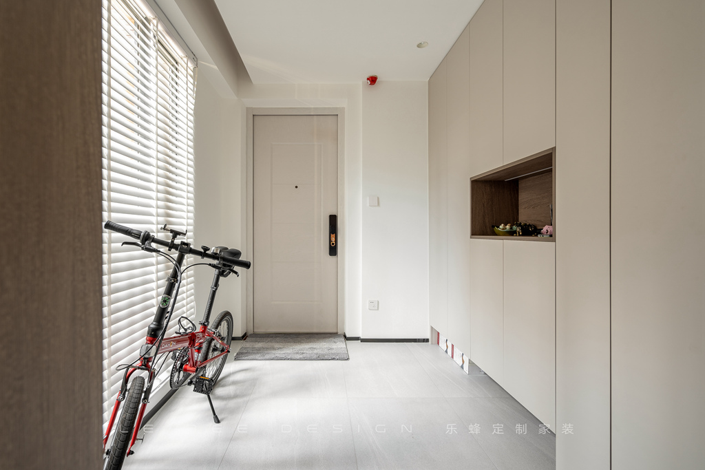打開(kāi)大門,簡(jiǎn)潔而高貴的入戶體驗(yàn)讓人心生愉悅,步入家門,左邊是鞋柜,可以舒解疲憊,卸下沉重的外套和包袋,放下工作的擔(dān)憂,感受到溫暖的家。
