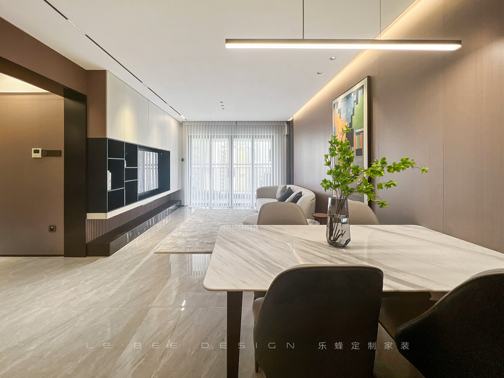 現(xiàn)代簡約風(fēng)的裝修正在成為越來越流行的選擇。這種裝修風(fēng)格可以呈現(xiàn)簡約自然、溫馨舒適以及大氣高級的效果。本案的業(yè)主是一個五口之家,家中有一個3歲的寶寶,女主人的父母也一同照顧小寶寶,使整個家庭充滿了溫馨和幸福的氛圍。為此,在材料的選擇上,專注于使用環(huán)保的材料,避免了尖銳鋒利的材質(zhì)。業(yè)主喜愛現(xiàn)代簡約風(fēng)的裝修,他們認(rèn)為這種風(fēng)格會使家里呈現(xiàn)出干凈整潔的狀態(tài),更易于打理和收納。業(yè)主鐘情于暖色系,設(shè)計師選擇了以暖灰色系為主題色調(diào),并運(yùn)用木飾面、巖板以及大理石等材料,讓整個空間散發(fā)出溫馨而自然的氛圍。