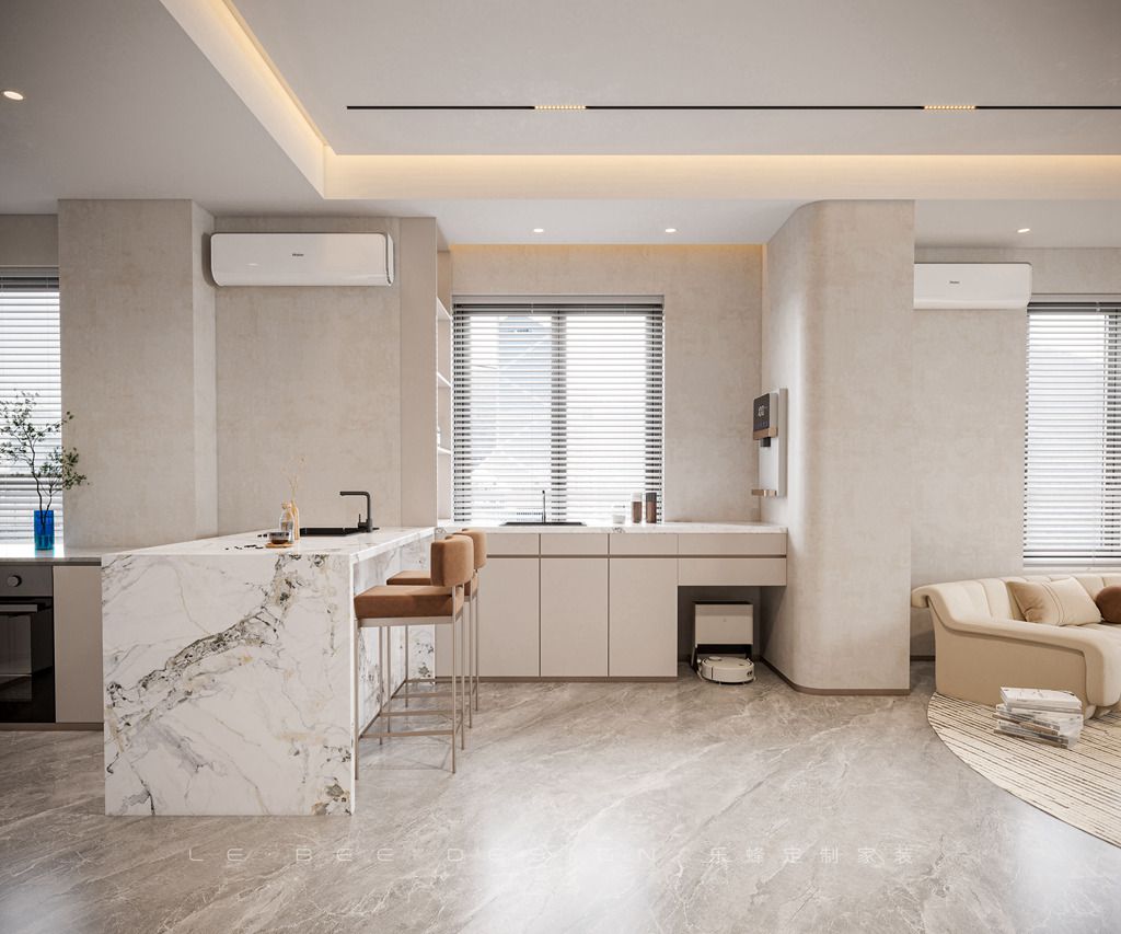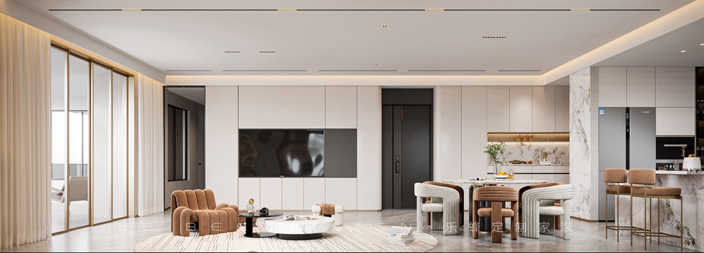 本案的設計主題:一個住宅最重要的本質是「人」,家是人最長久接觸的空間。業(yè)主一家是三代同堂 ,業(yè)主選擇現(xiàn)代簡約原因:是想造型越簡單就越耐看,以后不容易過時。業(yè)主是享受之人想每個空間都配套有衣櫥和洗漱間,客廳要有家庭聚會的空間,餐廳要能看到外景的效果。設計師建立在業(yè)主的需求上去滿足他們的功能訴求,通過設計讓空間變得更唯美,提高舒適度,讓業(yè)主享受在家的感覺,這才是我們心中家的樣子。