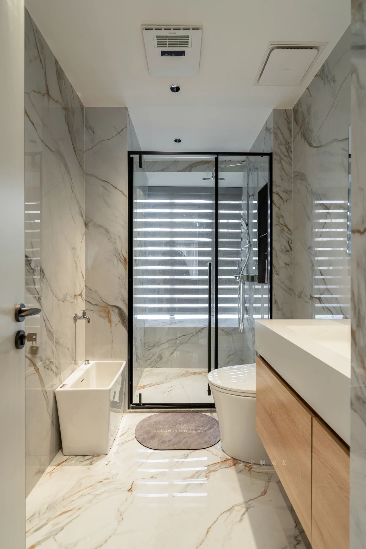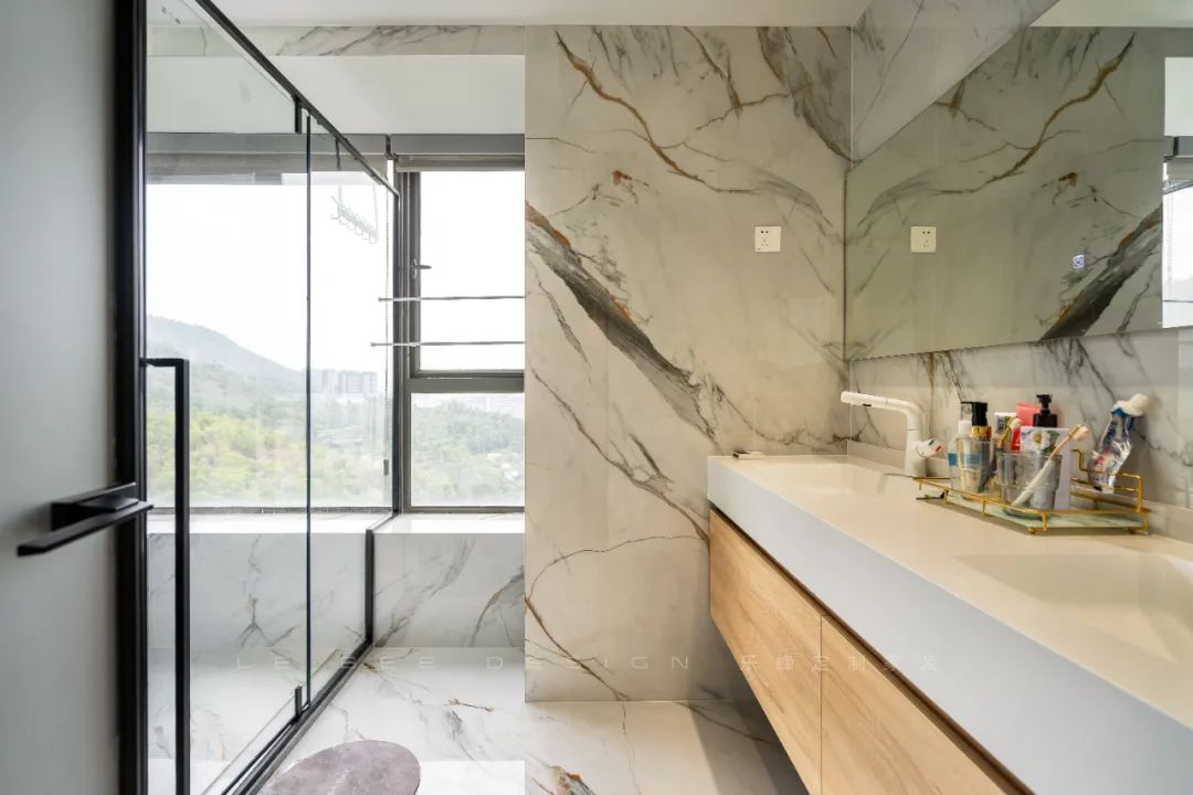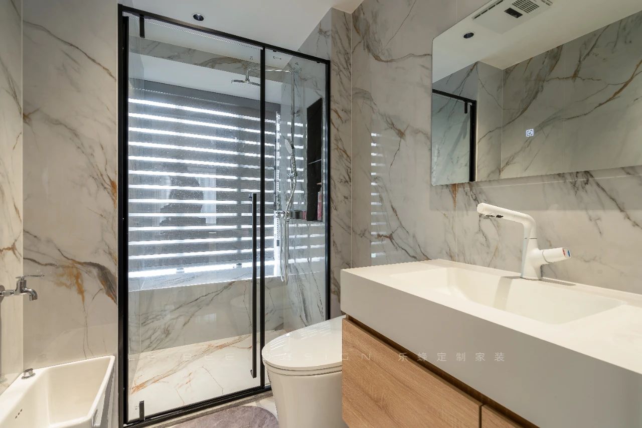公衛(wèi)以整體原木風(fēng)的設(shè)計(jì)為主題,強(qiáng)調(diào)自然與舒適的氛圍。干濕分離的設(shè)計(jì)提升了空間的實(shí)用性,使功能區(qū)域更加清晰。墻面采用大理石巖板裝飾,不僅賦予了空間高雅的質(zhì)感,還增添了豪華感和品味。設(shè)計(jì)上注重了細(xì)節(jié)和材質(zhì)的選擇,為衛(wèi)生間營(yíng)造出溫暖、典雅的氛圍,讓人們?cè)谄渲懈惺艿绞孢m與放松。