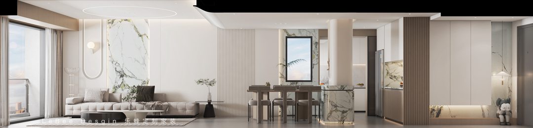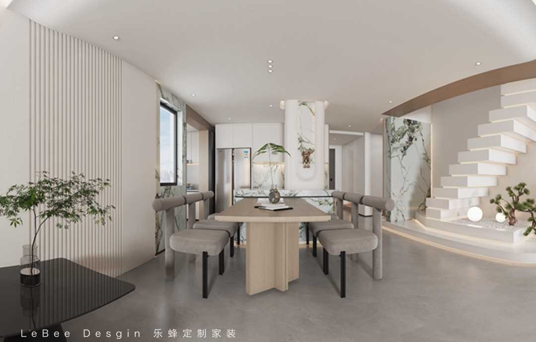 空間格調以現代、輕奢、優雅時尚混搭~采用沉穩的色調渲染每一堵墻壁,巧妙的拿捏心住戶心緒,以此營造新的動感空間。以簡潔的線條、塊面的疊落來演繹空間構成關系,著墨于光影與構景的詮釋,運用不同材質的碰撞蝶,強調細膩的變化對比,營造經典的合院豪宅。 細膩的紋理石材鋪陳瑰麗山,與金屬交織出細致的層次秩序,精致簡潔的語匯給人品質感的升華。將現代時尚與線條相結合,遵循化繁為簡,兩層挑空墻面