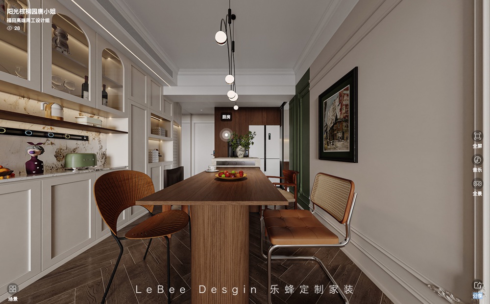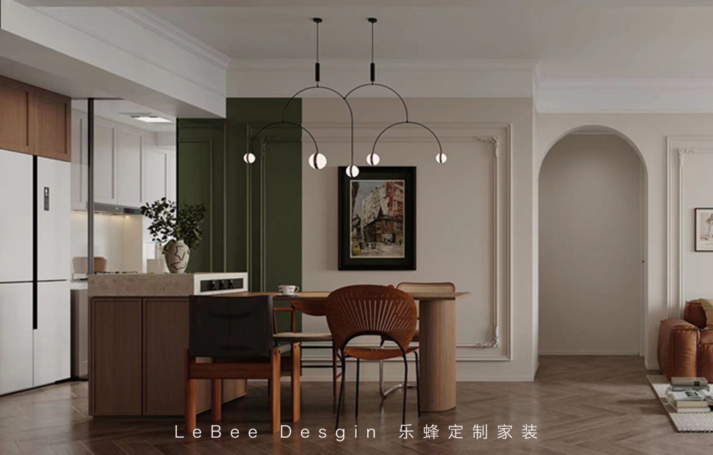 餐廳區域的吊燈和裝飾畫,巧妙地加入了中式風格的元素,使整個空間在現代感中透出一絲古典的韻味.