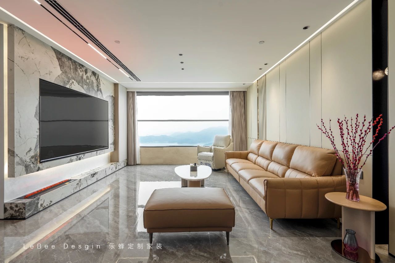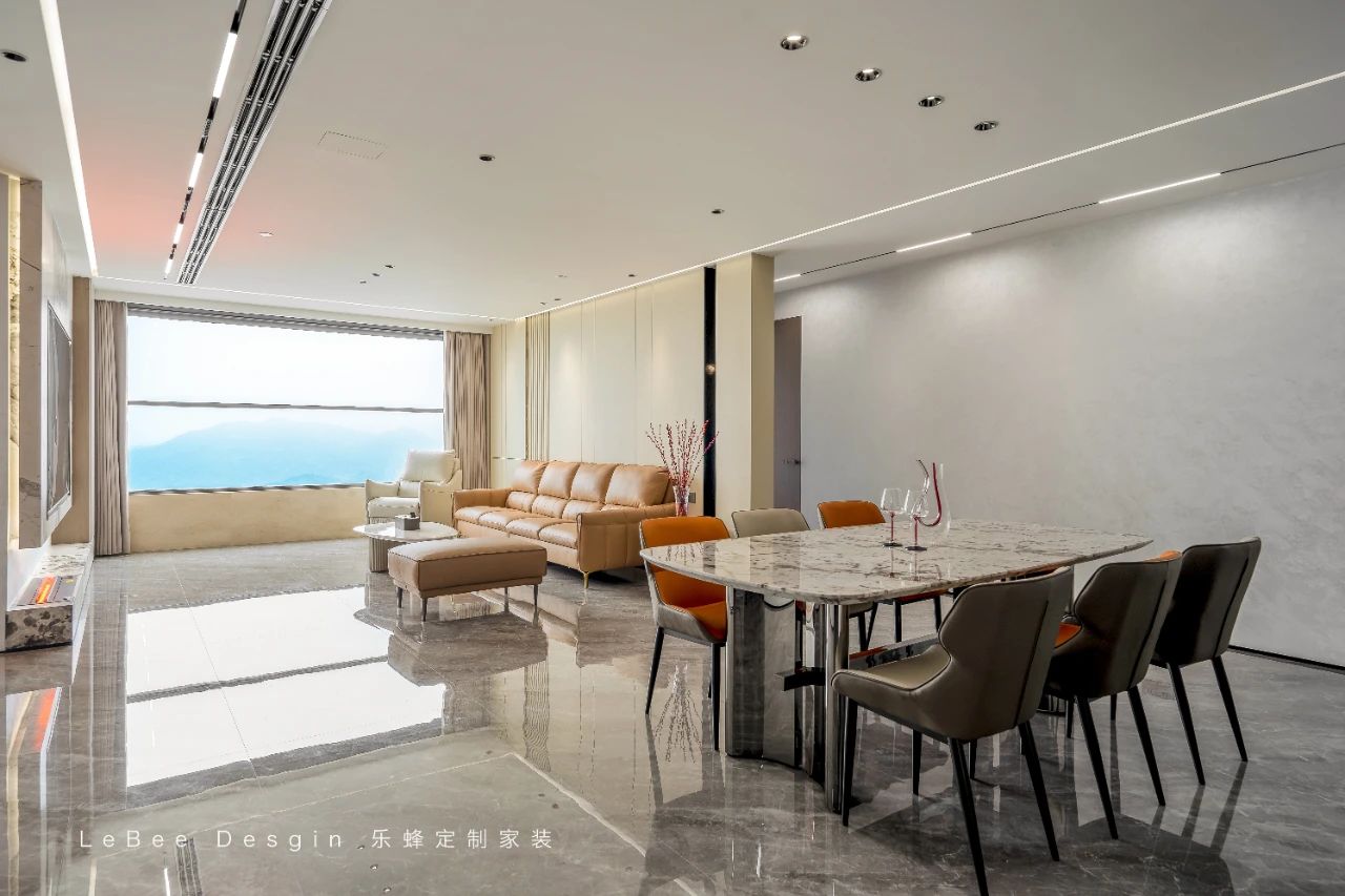 本案是位于深圳的一套面積達 160㎡的住所。男業主傾心于現代輕奢風,女業主則期望設計不要過于繁雜,經過綜合考量最終確定了現代輕奢風的設計方案,整體色調以溫馨的暖色系為主。