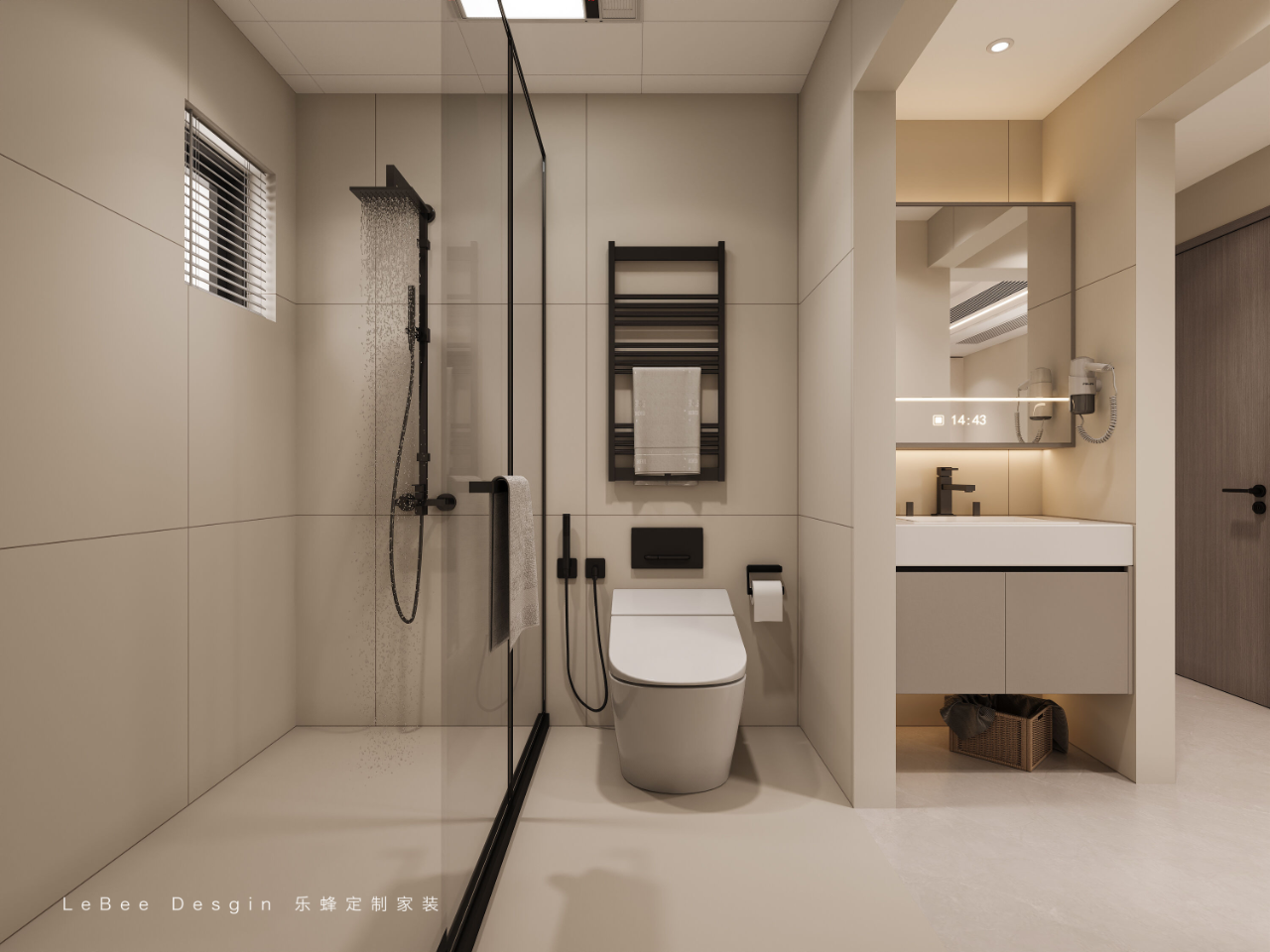 公衛采用了干濕分離的設計方式,將洗手盆外置。這種布局使得在有人使用衛生間內部時,其他人仍可在外部洗手,提高了使用效率。同時,選用柔光磚上墻,營造出柔和、舒適的視覺效果,為整個空間增添了溫馨的氛圍。