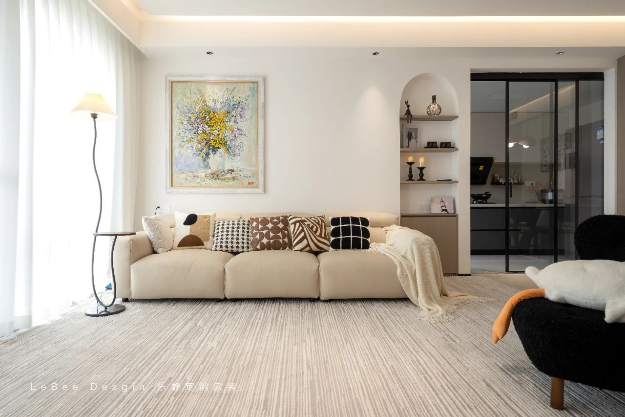 米白色的床品恰到好處地進行點綴,為房間增添了幾分溫柔與甜美。