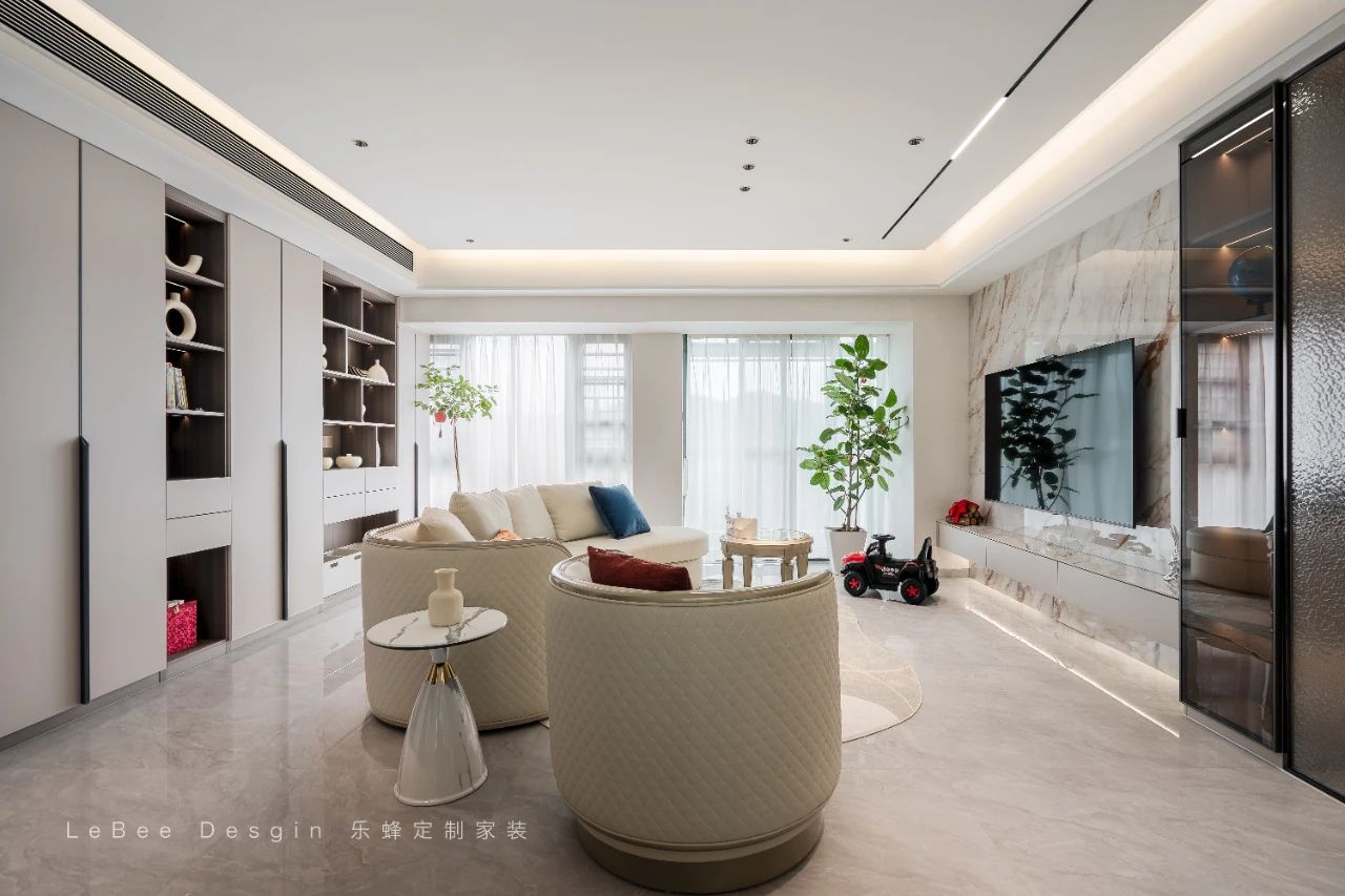 整體暖白柜門與淺色系,如同一股暖流涌上心頭,令人瞬間身心放松。同時,規劃的充足儲物空間,確保了家中的整齊有序,為隨性舒適的家庭氛圍奠定了堅實基礎。