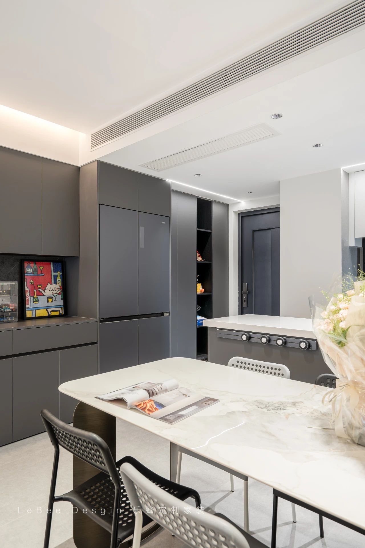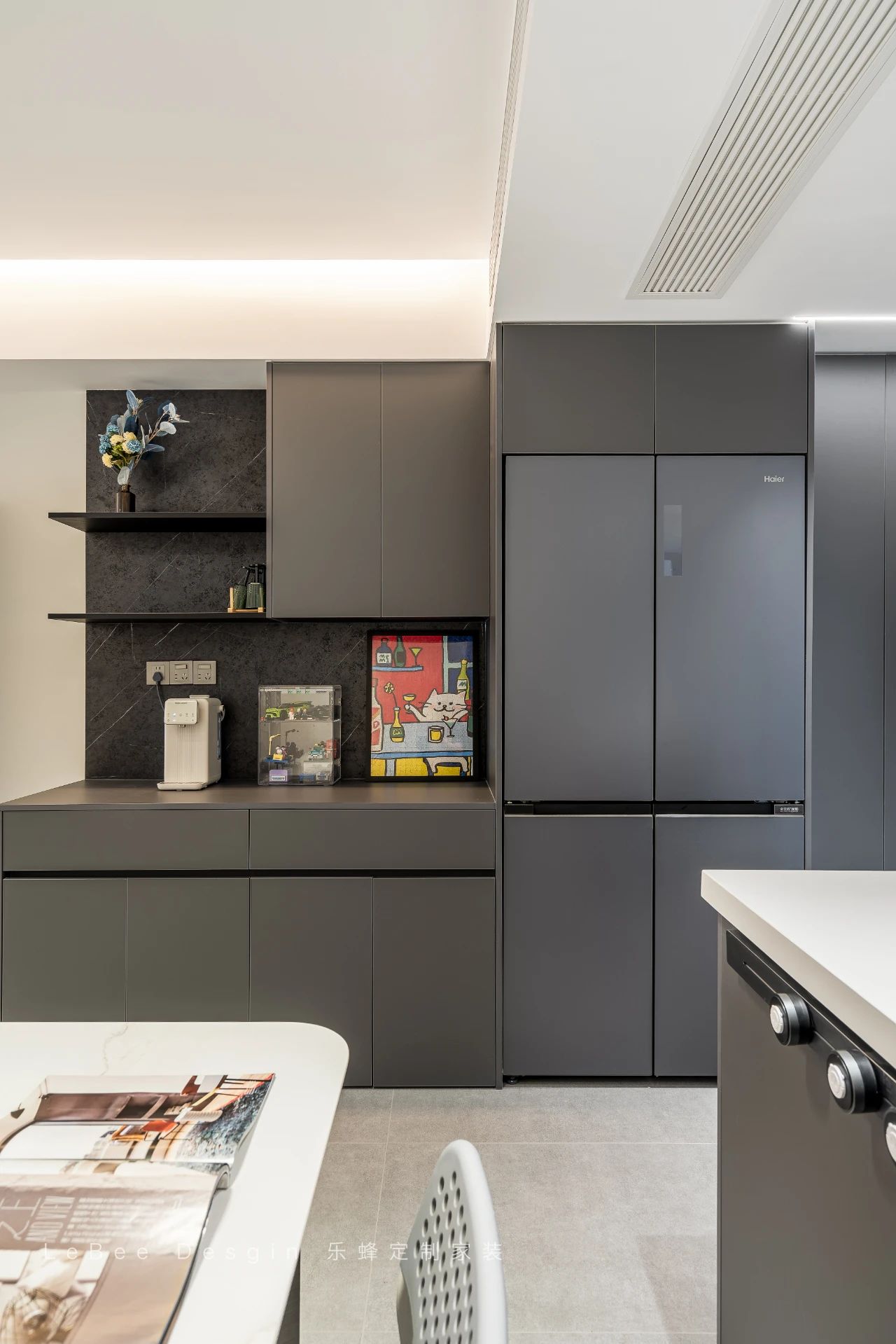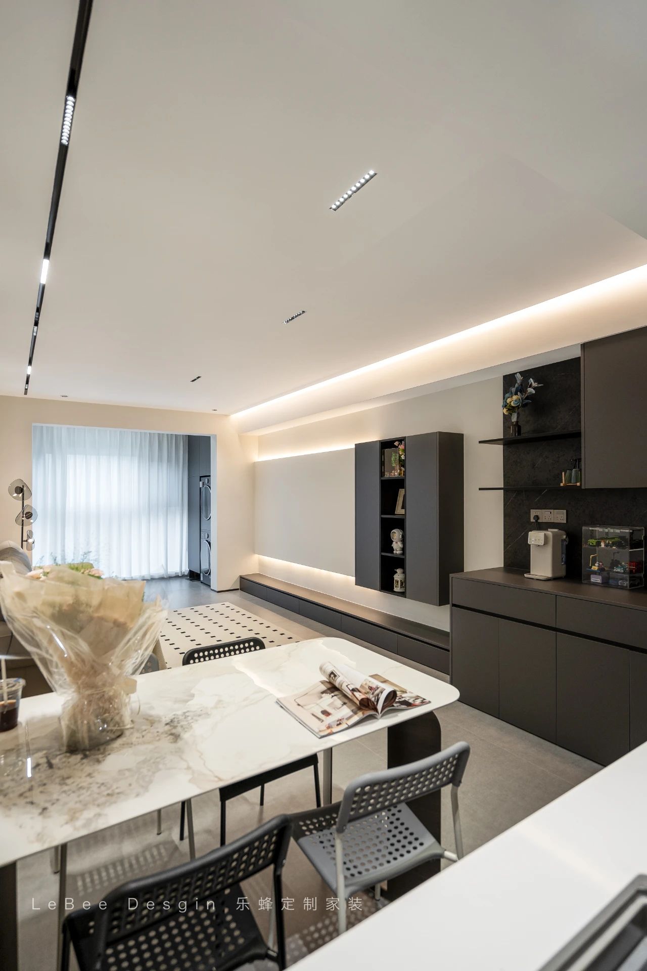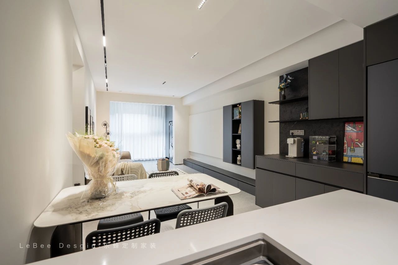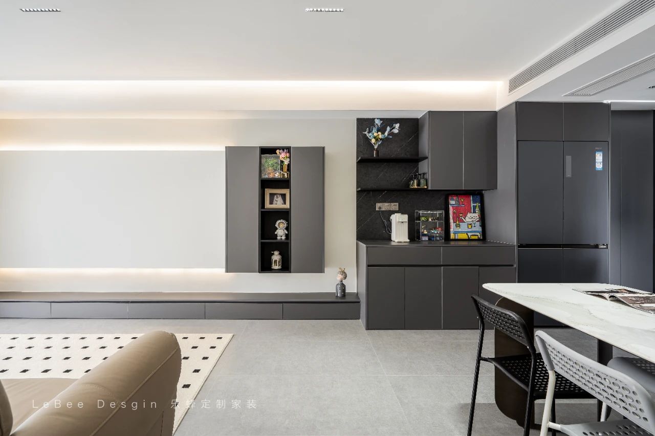 整墻餐邊柜擁有滿滿儲物空間,中空臺面可以做咖啡角操作臺,實用又好看。