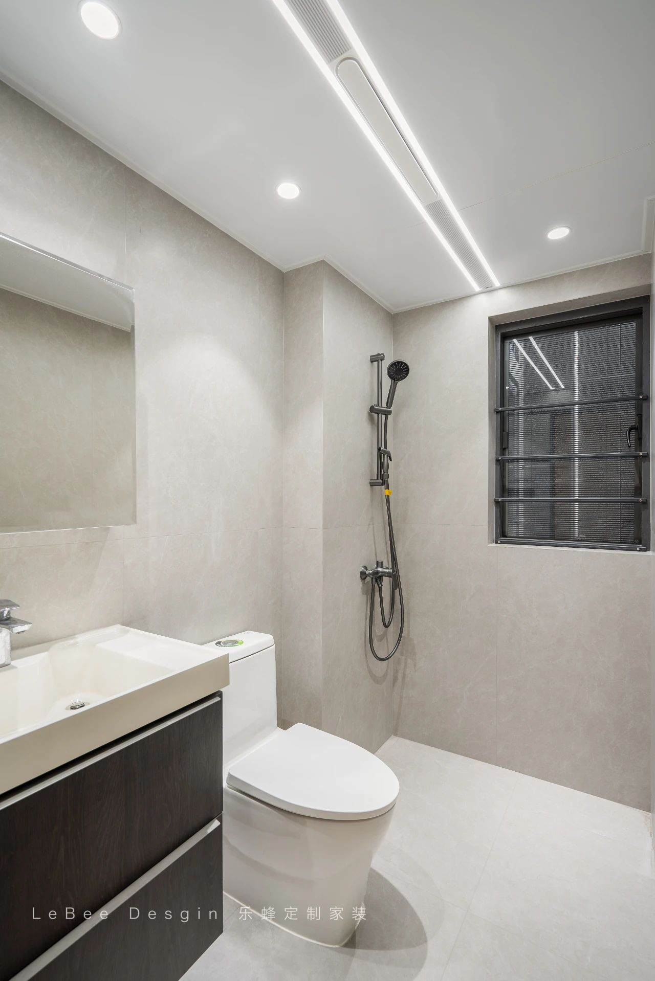 公衛干濕分離設計,通透鏡柜讓局限的衛生間,深藍色收納柜讓這個空間更加實用。