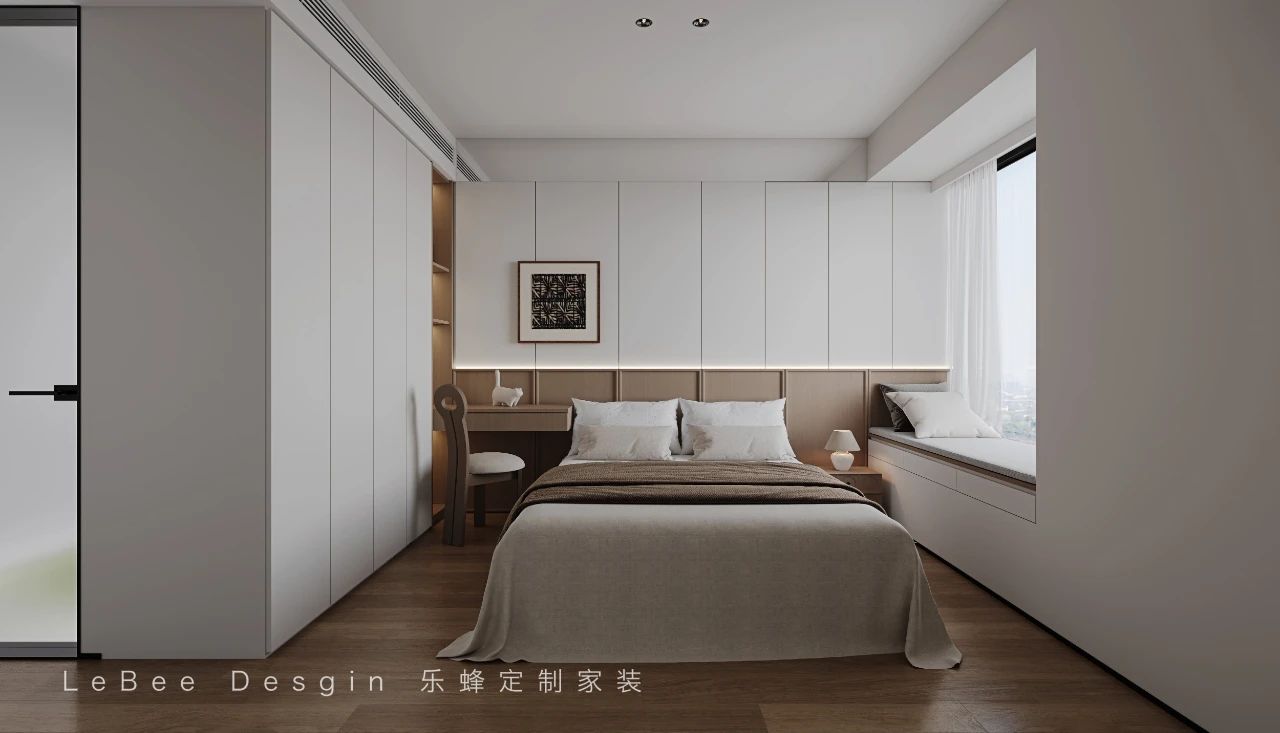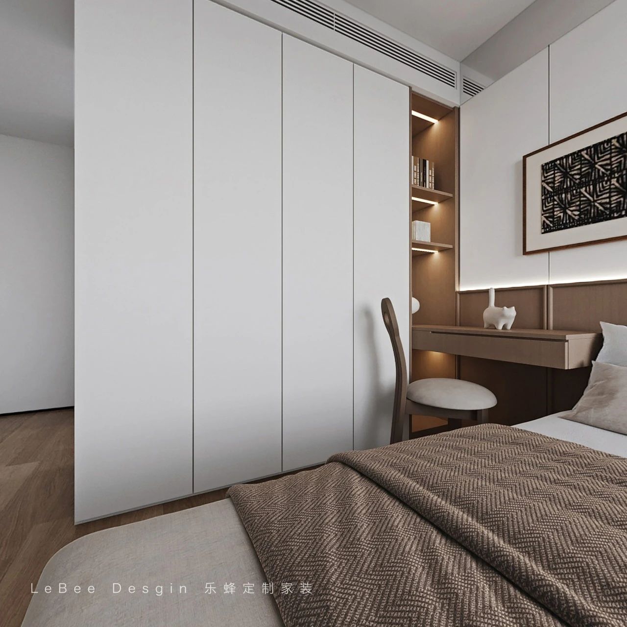 - 主臥效果圖 - 主臥的設計,簡約而不簡單。暖色調的墻面,如同擁抱般溫暖;木質家具的衣柜,散發出淡淡的木香,讓人心生寧靜。