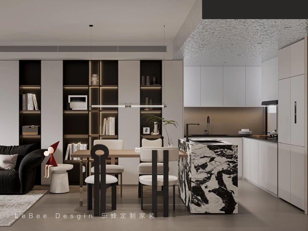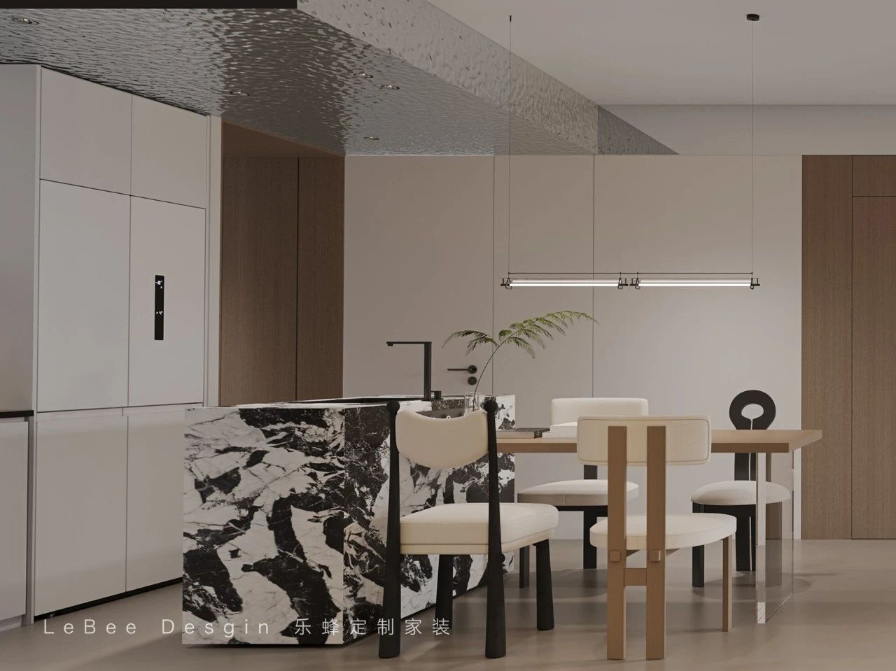 餐吧臺一體的設計,不僅能滿足一家人的日常需求,更使室內更加寬敞,解放空間。將屬于餐廳的時尚感裝進自己的家里,每次就餐都有不同的浪漫和新鮮感。