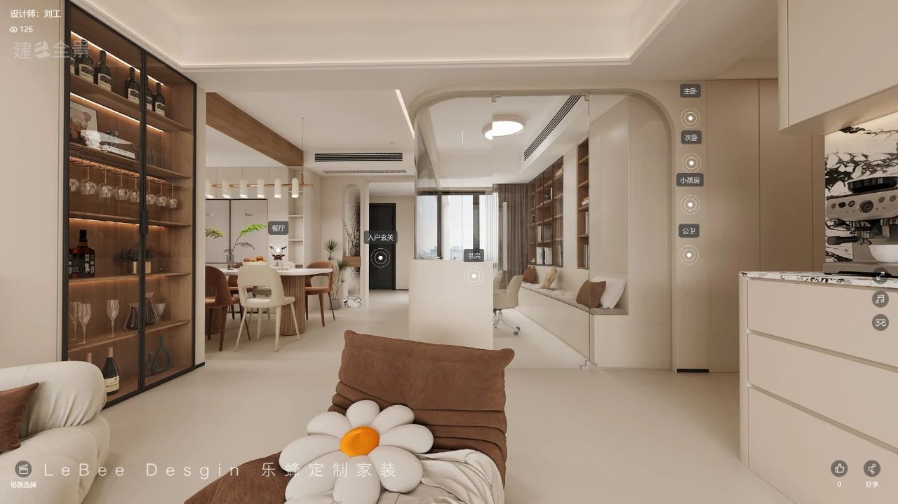 在設計之前,業主就構想過數次新家的樣子——溫馨的奶油色調、寬敞的去客廳化設計、不拘泥于傳統。在家里融入自己閱讀的愛好,不隨波逐流,處處皆是生活痕跡。