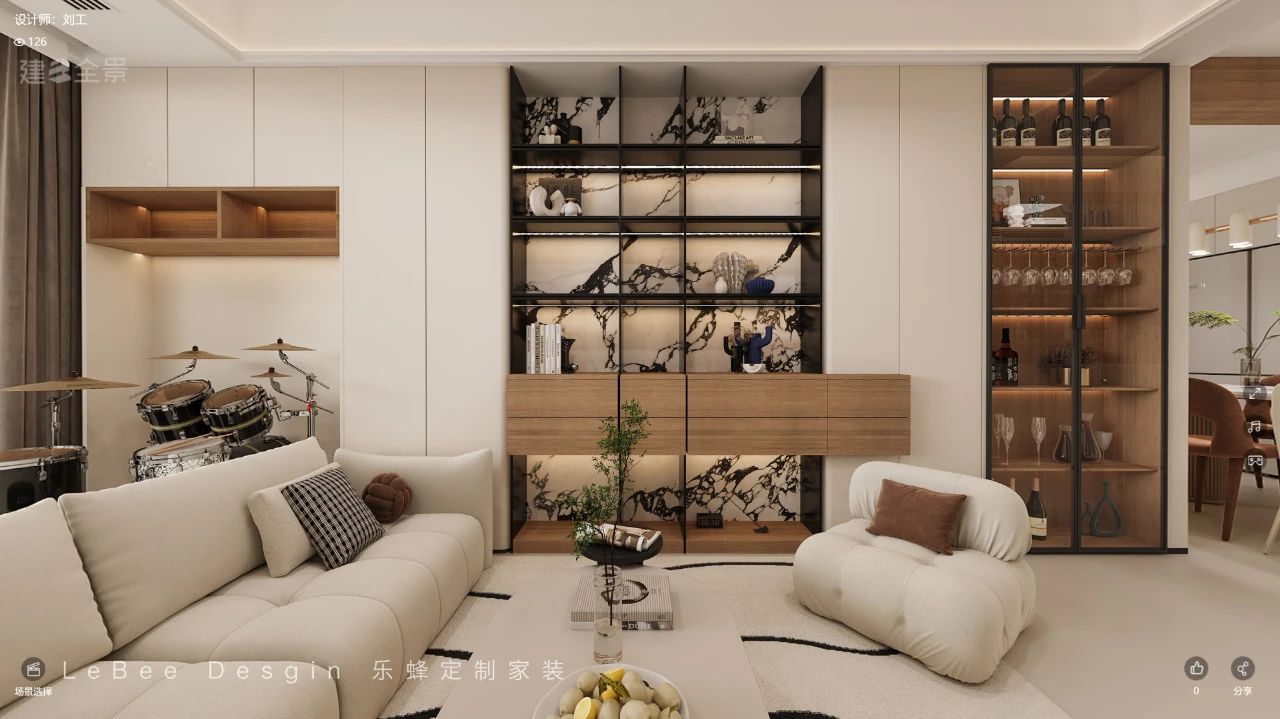 - 步入客廳,清淺溫柔的氣息撲面而來,舒適淡雅且純粹,使空間回歸到樸實無華的簡約基調。這里的客廳溫柔而內斂,高級感隱藏于每一個細節之中。