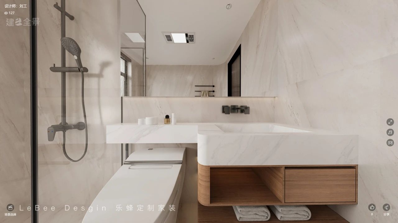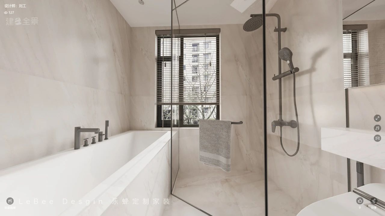 - 衛生間效果圖 - 主衛采用干濕分離設計,整體呈暖色調,給人溫馨舒適的感覺。