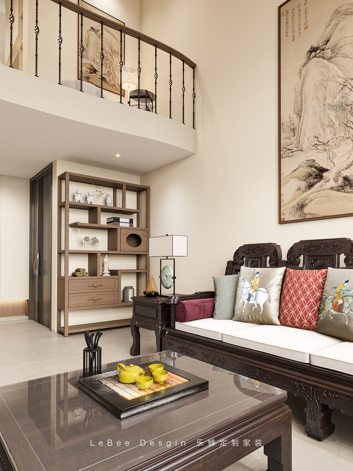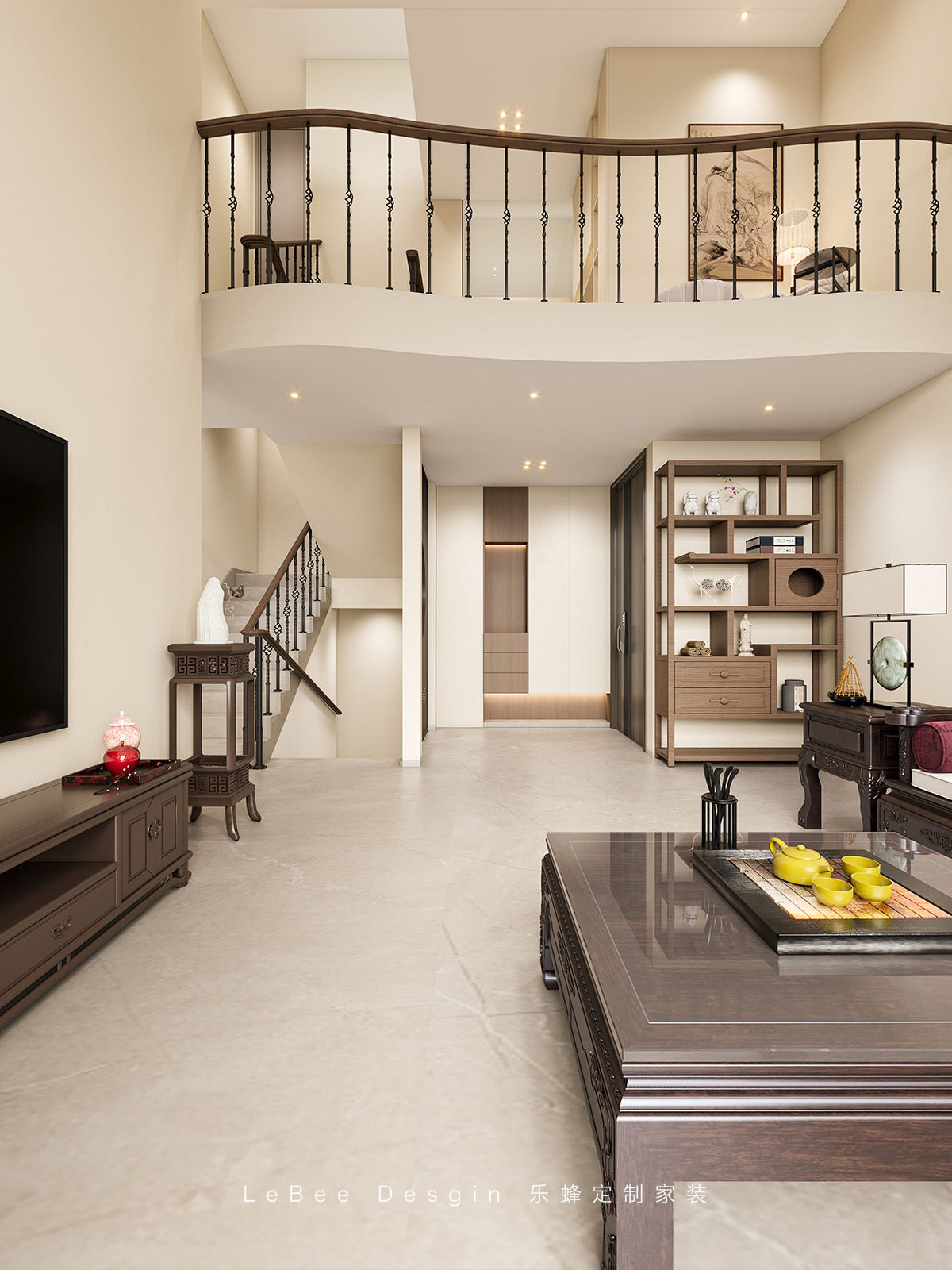 中式的第一感覺就是沉悶,不適合年輕人?NO! NO! NO! 新中式裝飾設計以簡約、大氣、實用為特點,將傳統與現代元素巧妙融合,營造出一種低調而奢華的氛圍!80后的王女士一家六口,這是他們家的第二套房子。該房子是一個自帶露臺的小復式。之前的第一套房子基本是自己裝修的,由于沒有考慮到設計細節,居住體驗不好,于是這套房子找到我們幫她設計,最終確認了本方案!讓我們一起來看看吧~