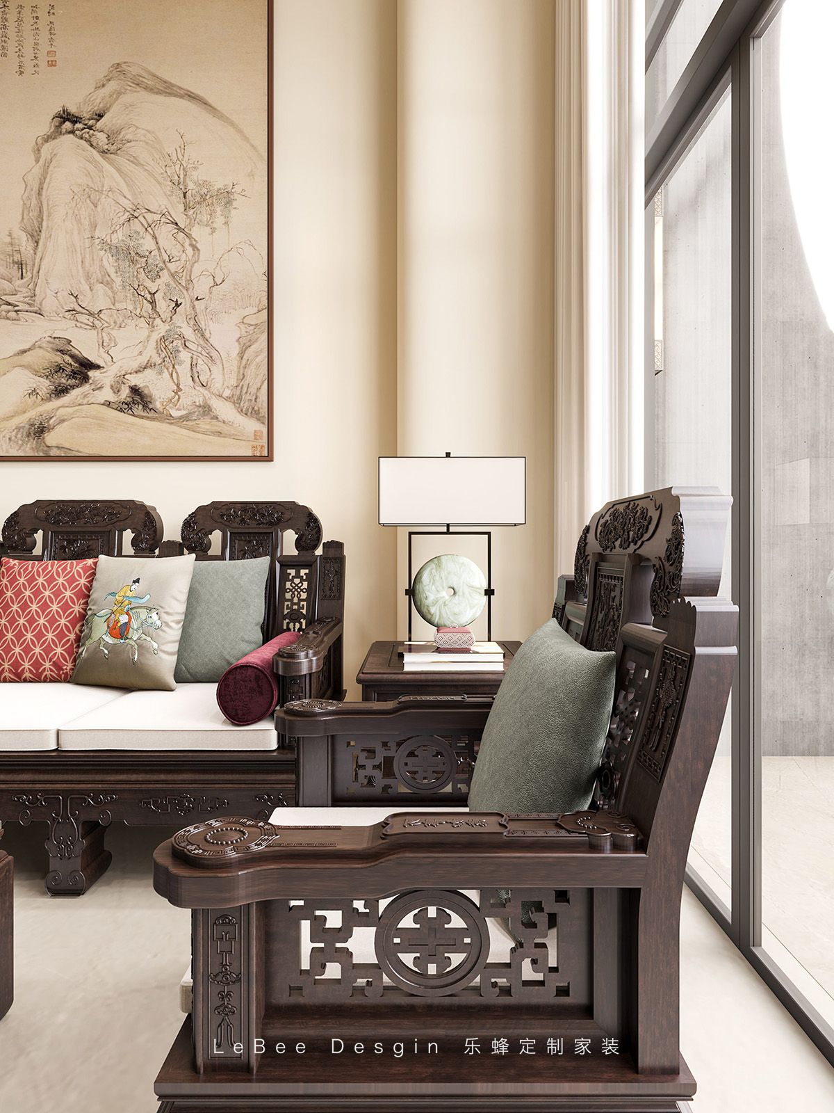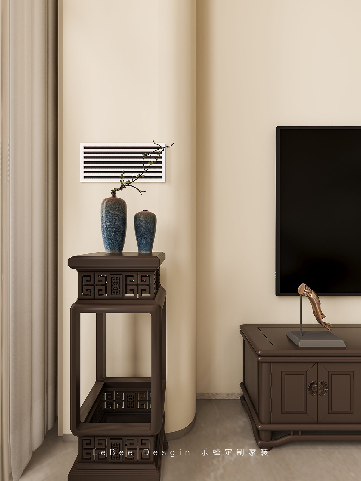 色彩以原木色為主色調,注重室內空間的層次感。在裝飾上,我們采用簡潔的直線條和簡約的幾何造型,以及中式元素的應用。