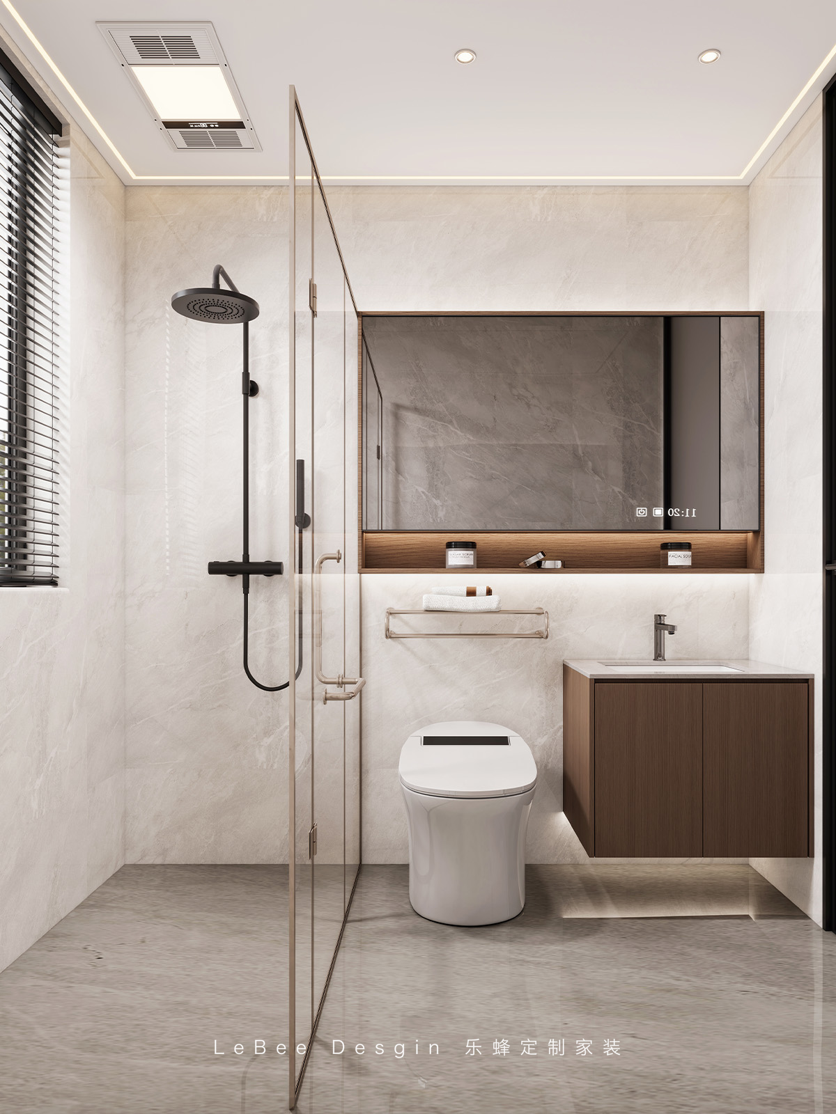 - 衛生間效果圖 - 衛生間的干濕分離設計,既實用又美觀。瓷磚和洗漱臺的搭配也延續了整體的裝修風格。