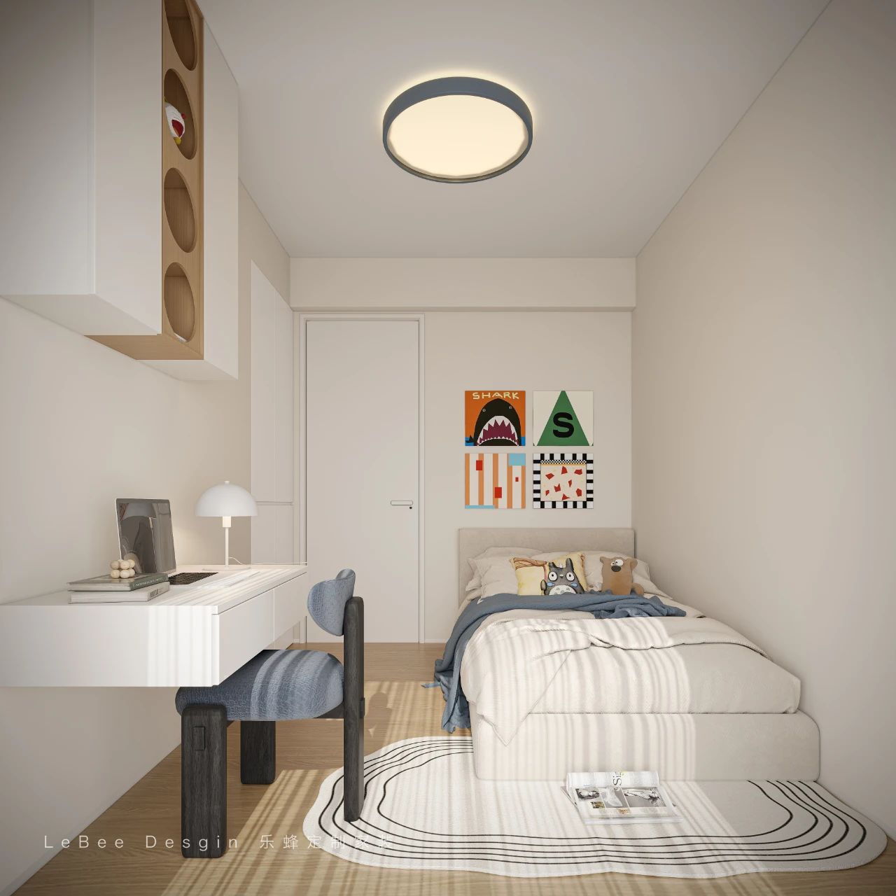 - 兒童房效果圖 - 兒童房遵循整體設計風格,添置掛畫、玩偶,充滿童趣。