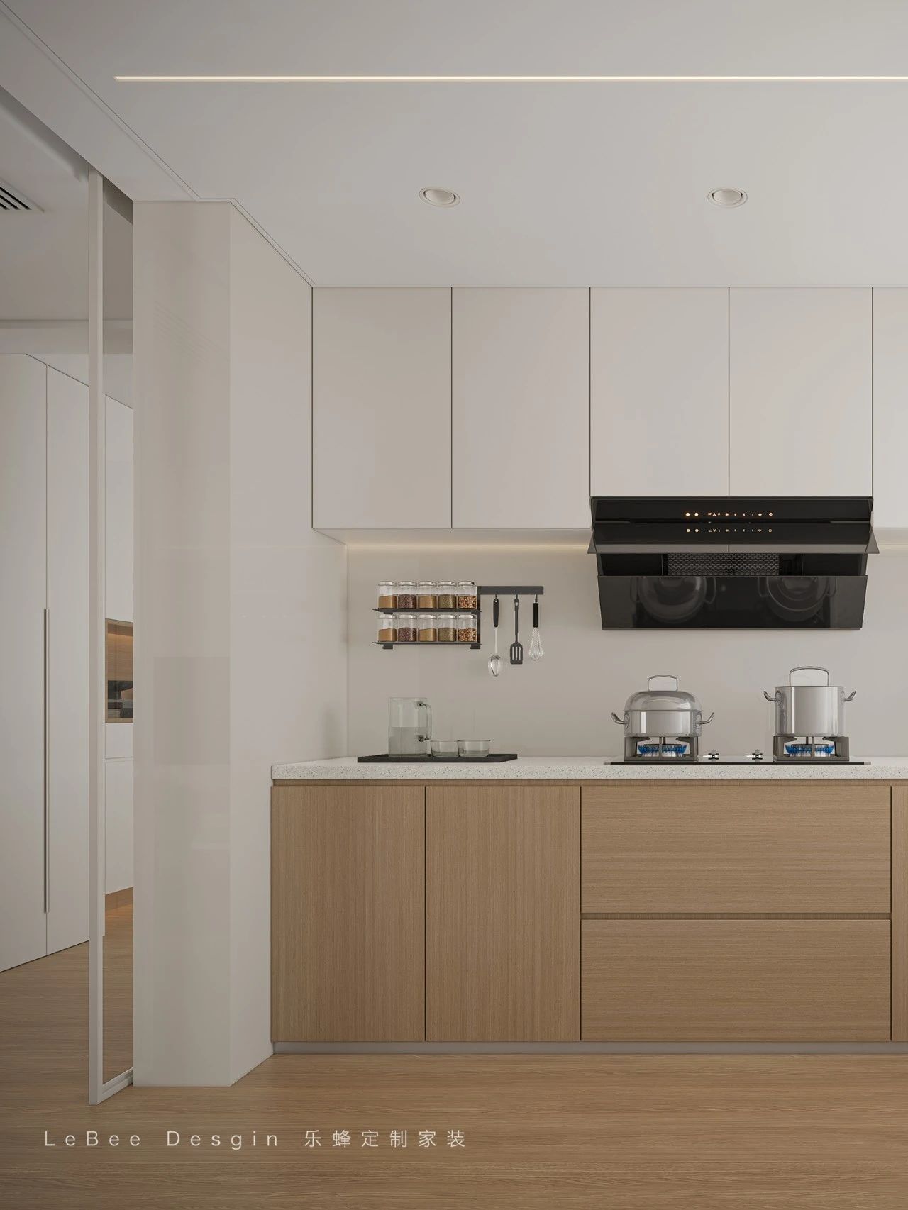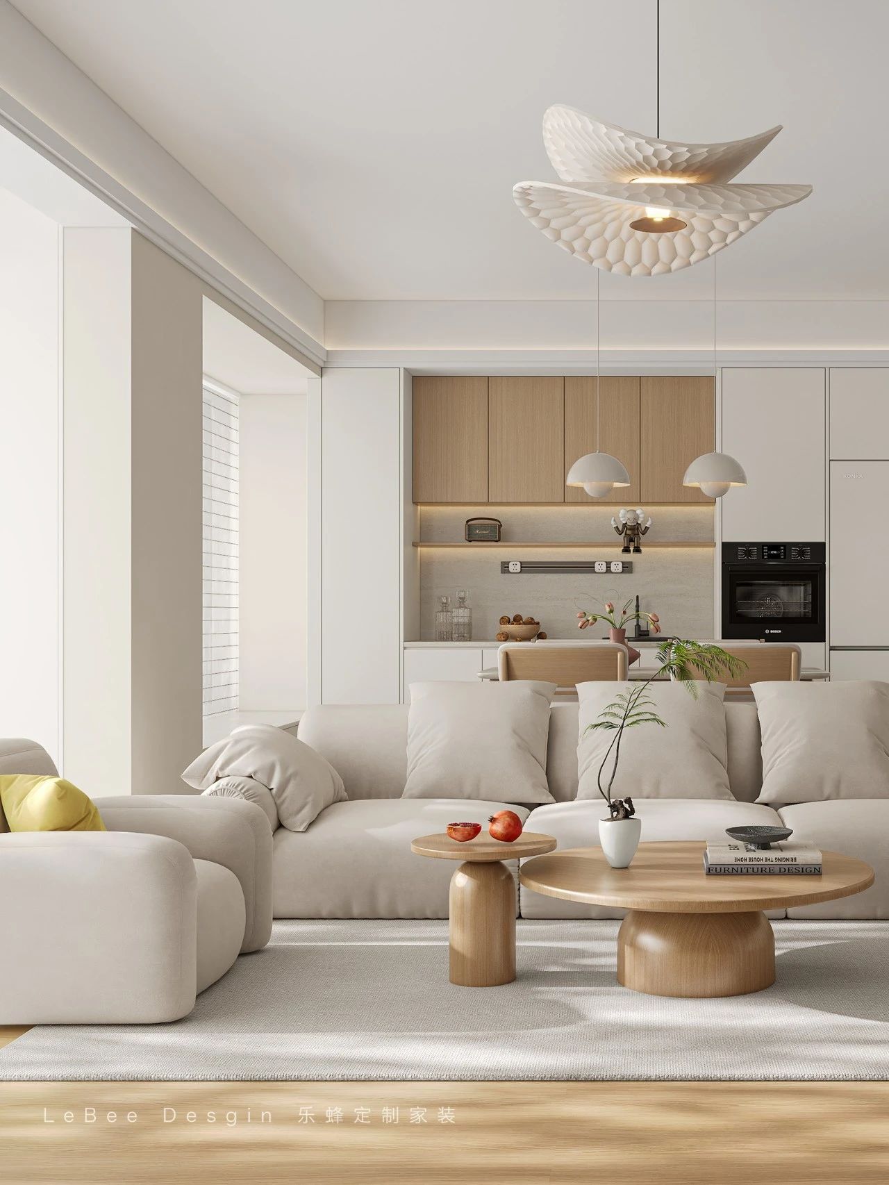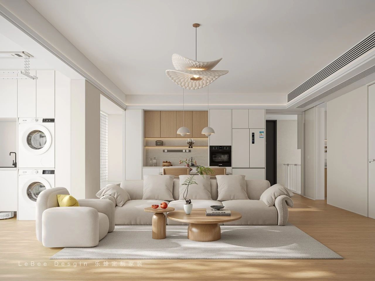 - 全屋以奶油色系為主導,溫潤原木加以點綴,營造出溫柔、溫馨、溫暖的家居氛圍。木紋磚與木飾面上墻,搭配暖色調軟裝,盡顯肉眼可見的高級感。