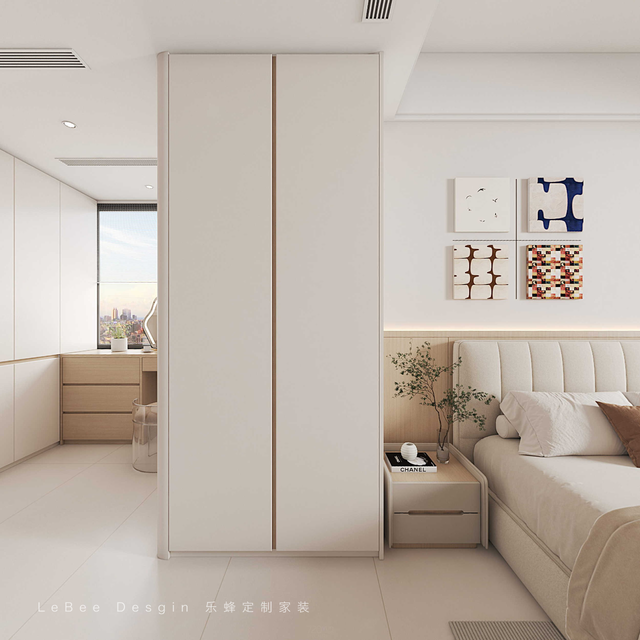 將整體色調刷成溫柔的米白色,融入溫潤的木色,滿足業主對自然的追尋,沒有多余的裝飾,線條干凈利落。