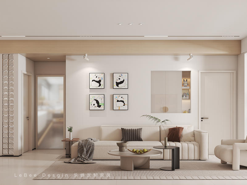 客廳采用無主燈無主燈設計,僅在中央空調部分進行吊頂與氛圍燈走線,既不繁瑣,又為空間增添了一份獨特的氛圍感。
