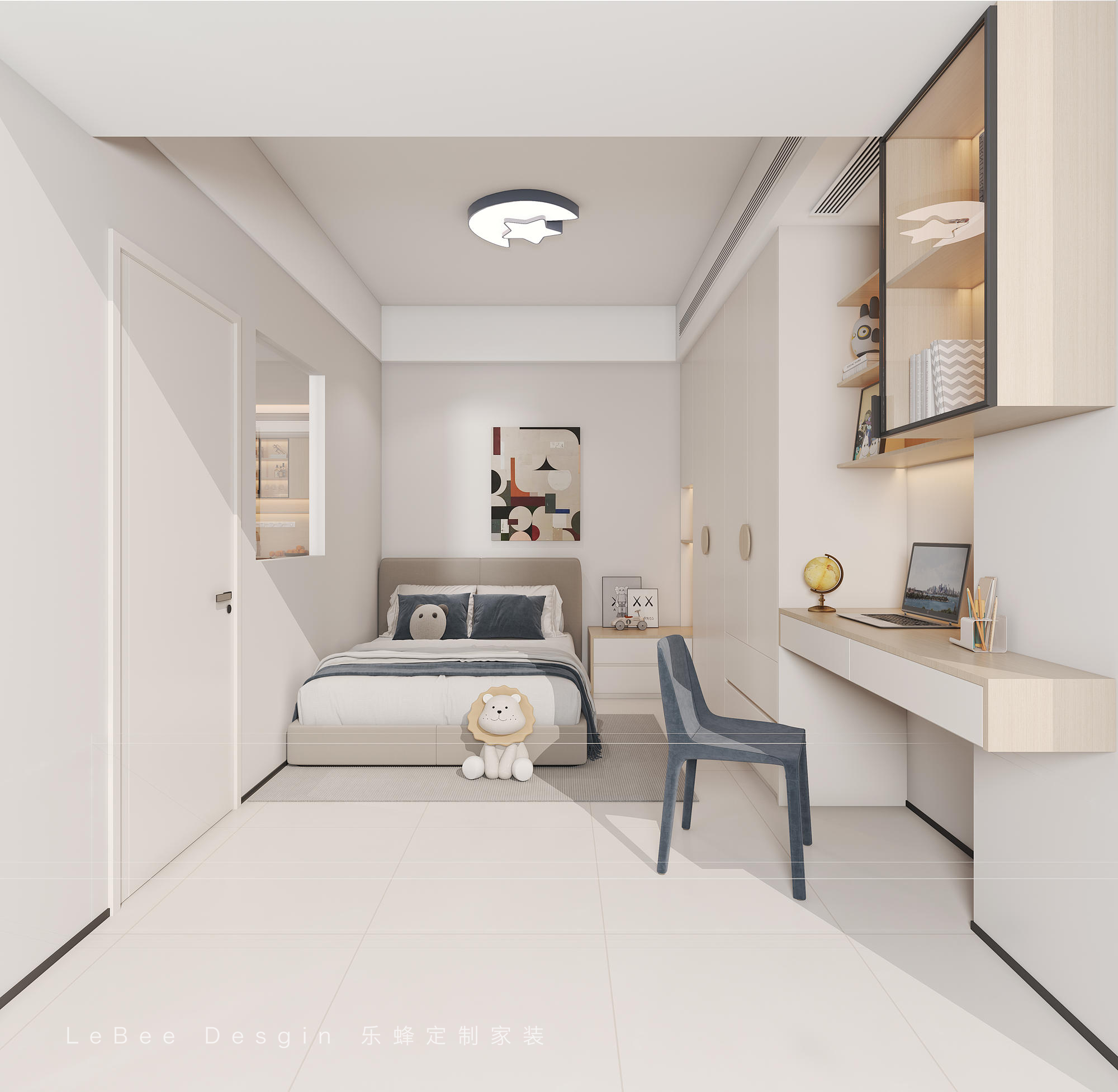 裝修時不僅考慮了睡眠環境,還充分考慮了學習和收納空間,合理布局,簡約大方。