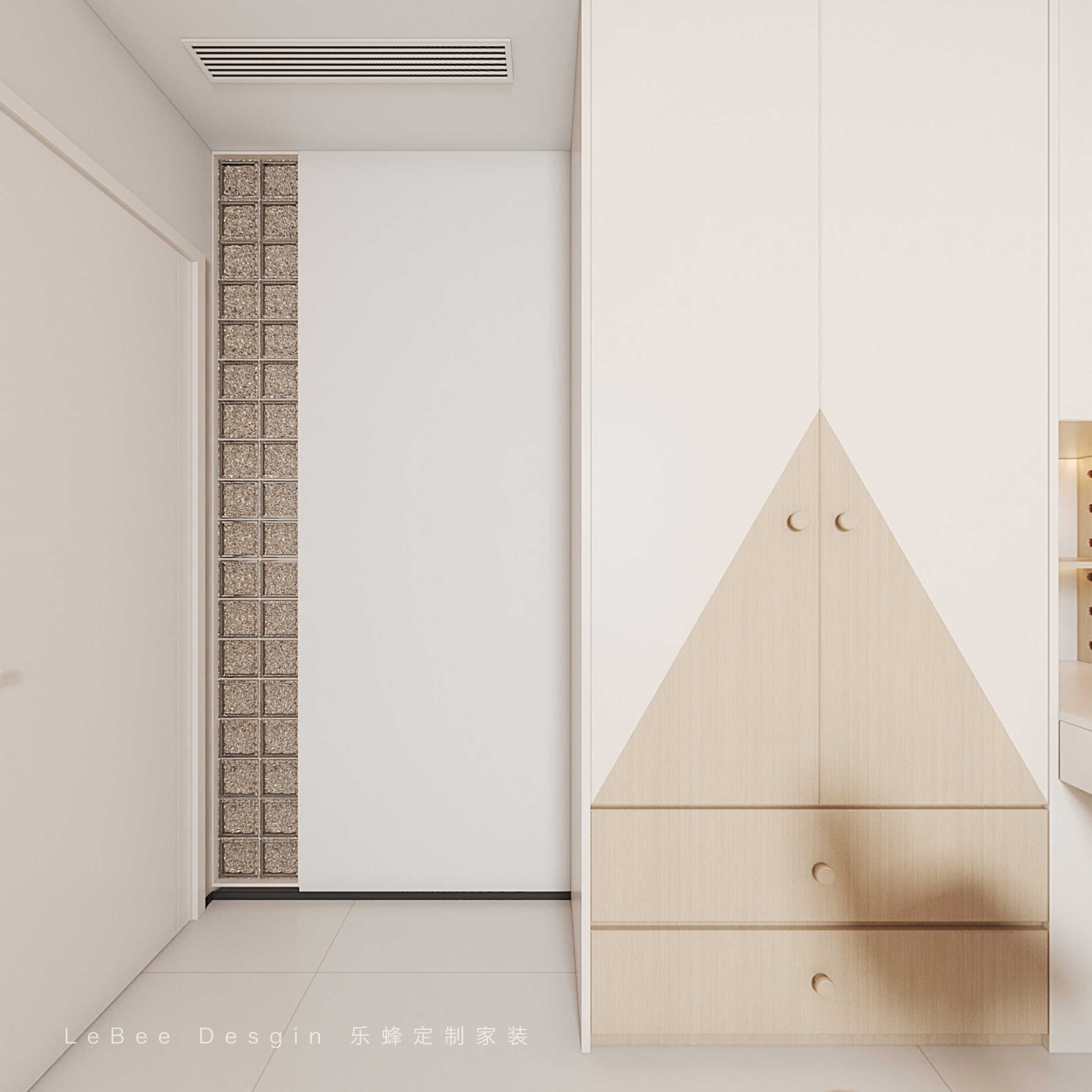 石膏板做鏤空設計,透過鏤空可看到臥室,實現渴望可達的效果,增加空間的設計感。