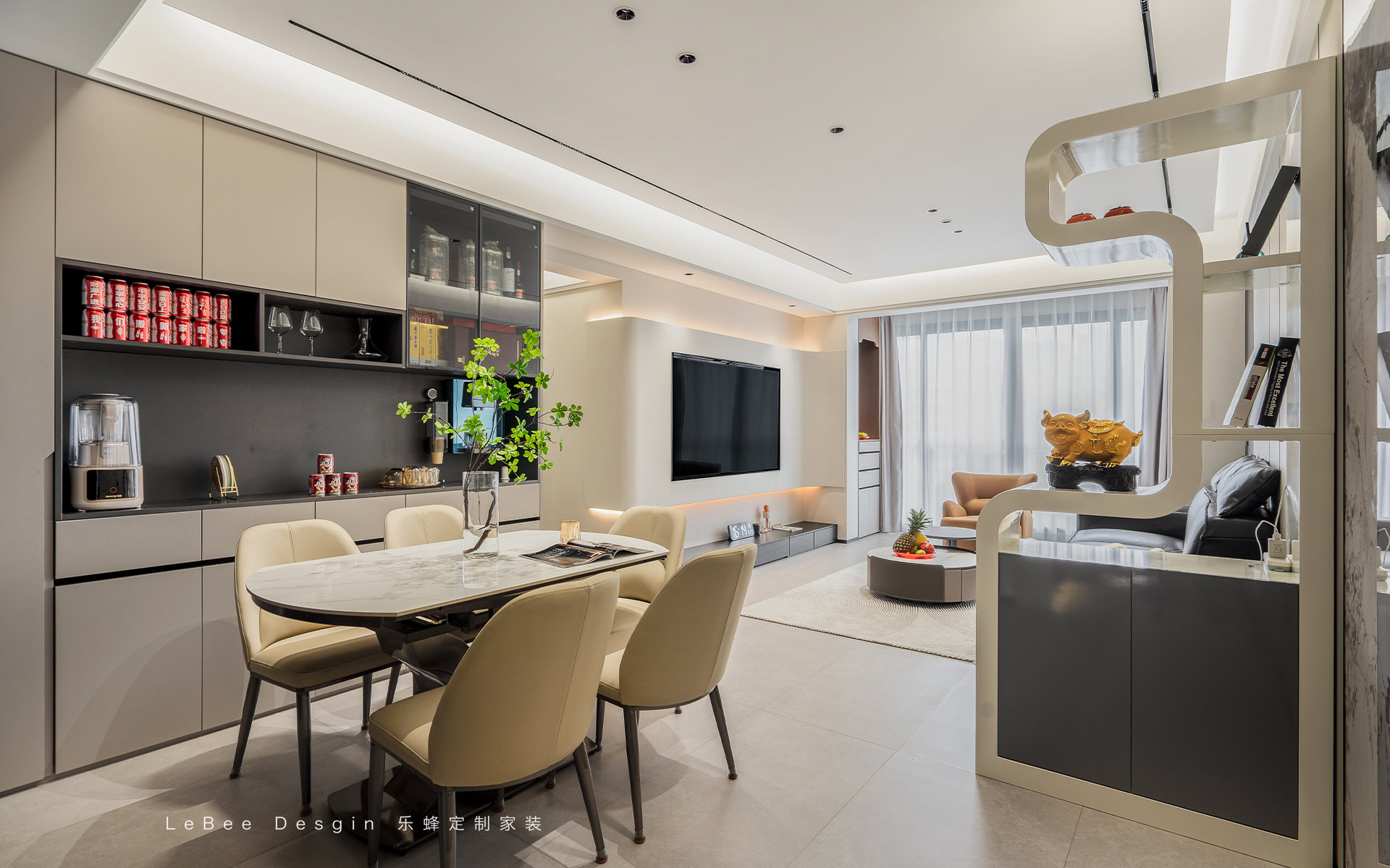 無主燈設計簡直是氛圍營造高手,客餐廳無縫對接,空間通透又顯大~