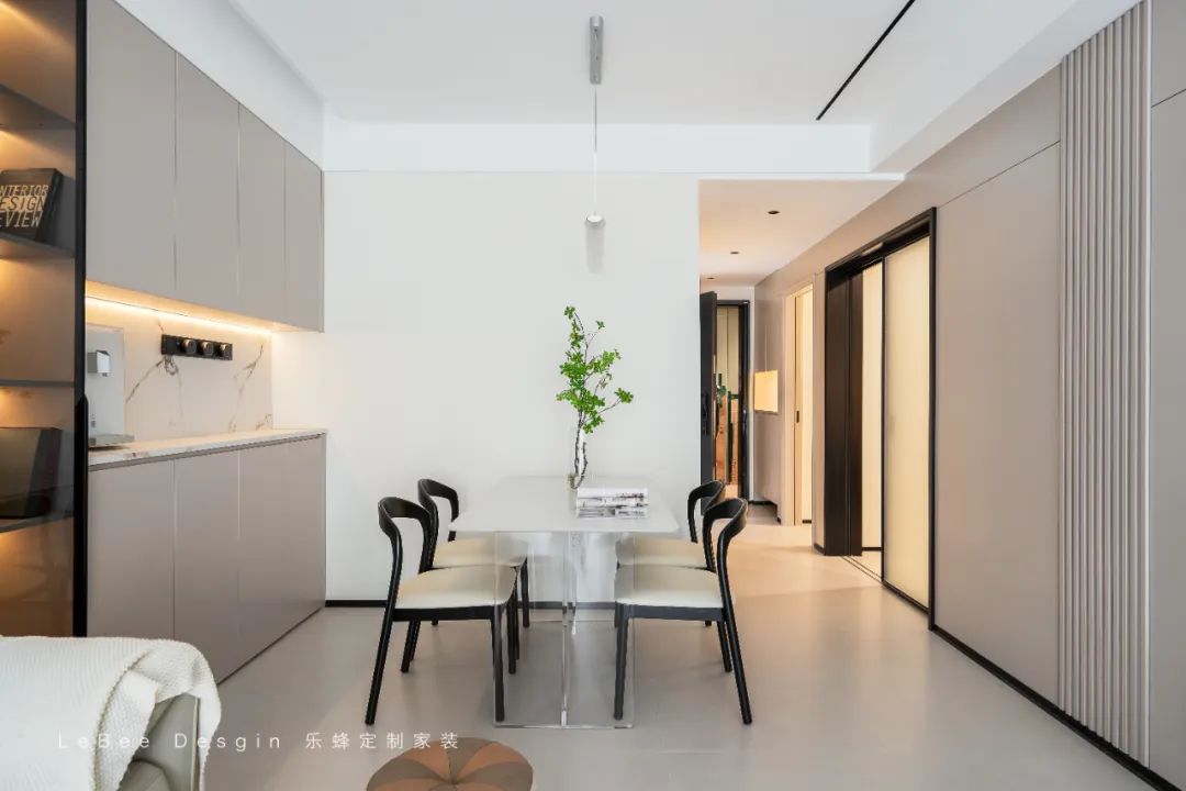 ?吊燈同樣采用簡約的款式,柔和的光線,為整個空間增添了一抹溫暖的氛圍。在這樣的燈光下用餐,讓人感到格外放松和愜意。