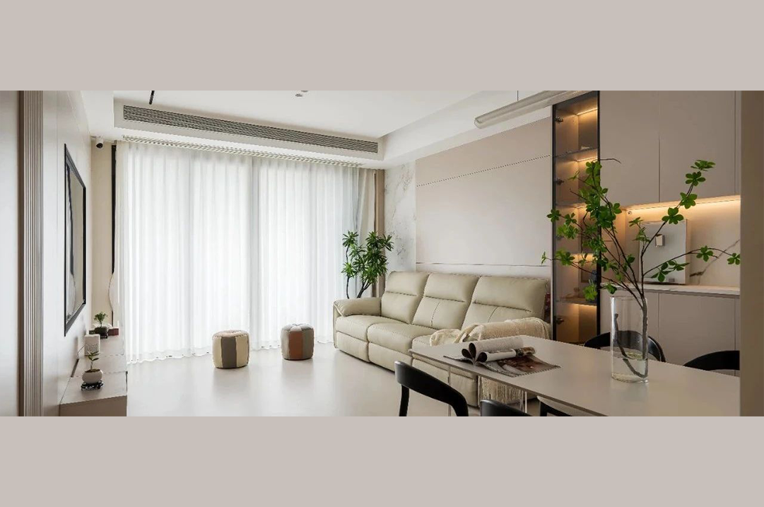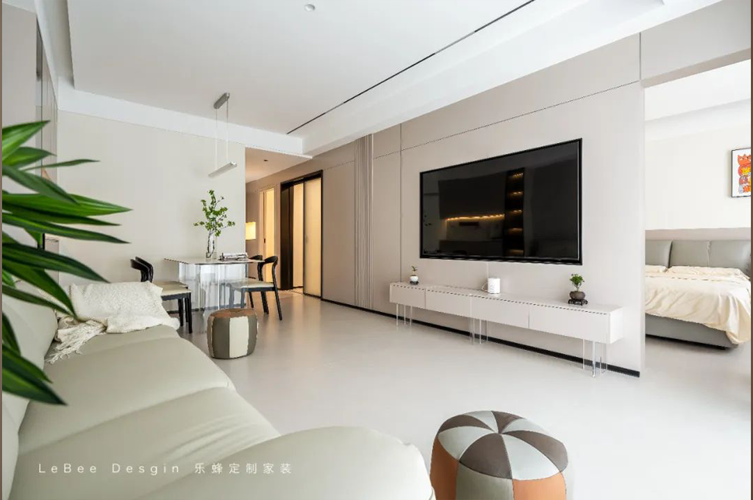 電視墻與沙發墻的“呼吸感”設計:通過懸浮、留白與線性光影,避免大面積墻體壓抑感。