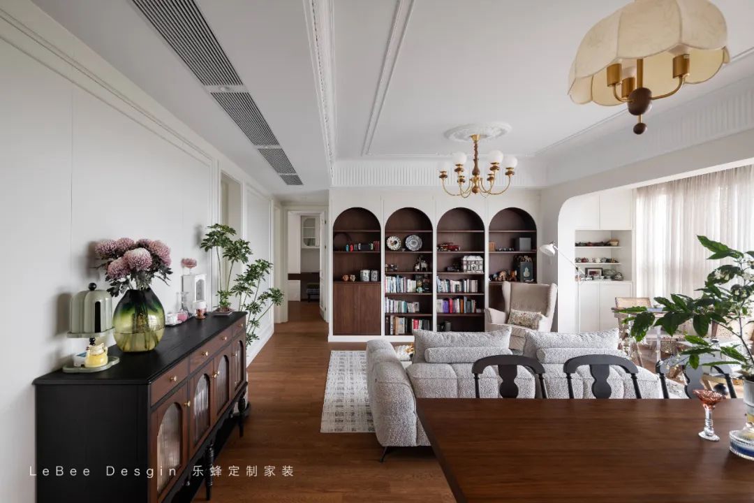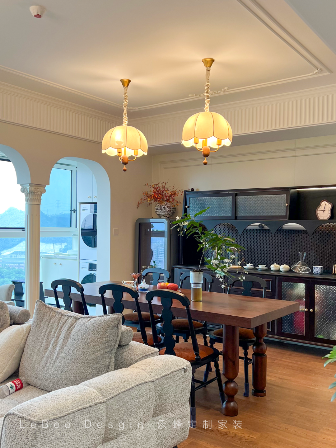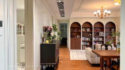 本期案例位于深圳翠園華府,125㎡的空間里,設計師以胡桃木色為基調,融合法式線條與中古質感,打造出慵懶又精致的居家氛圍。