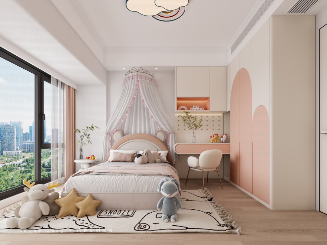 - 兒童房效果圖 - 女孩房設計以夢幻為主,同時兼顧實用性。