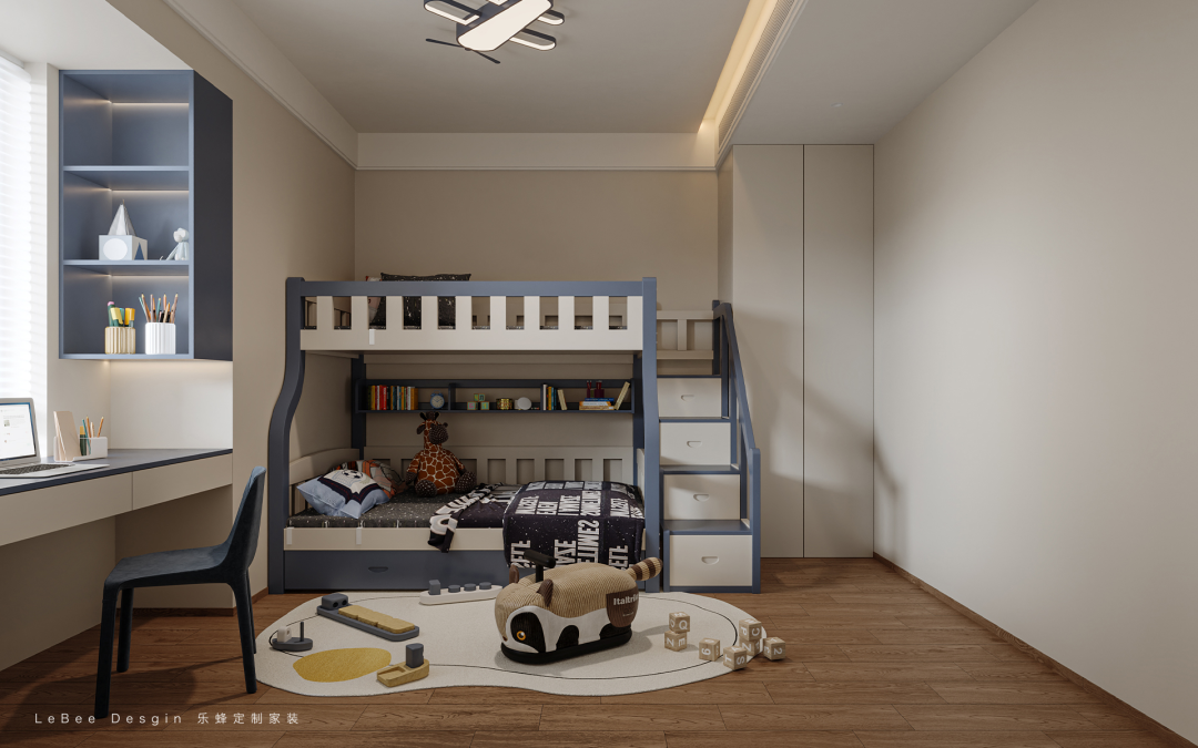男孩房相較于其他空間,整體的色彩更為童趣而溫馨居住需求。