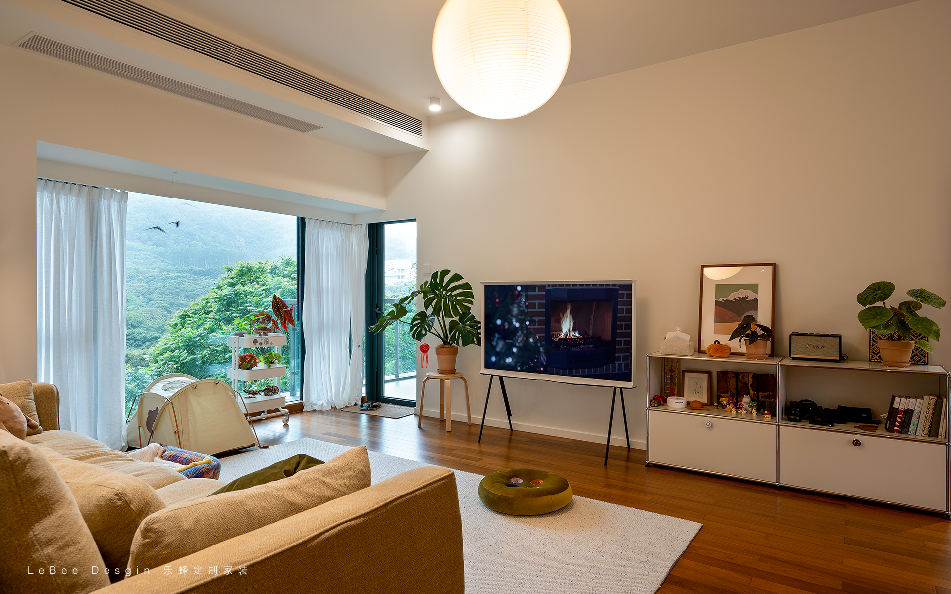 整體以中古包豪為主,柔和的奶白色為主色調,開放式設計,打破空間局限,小家也顯寬敞又通透。
