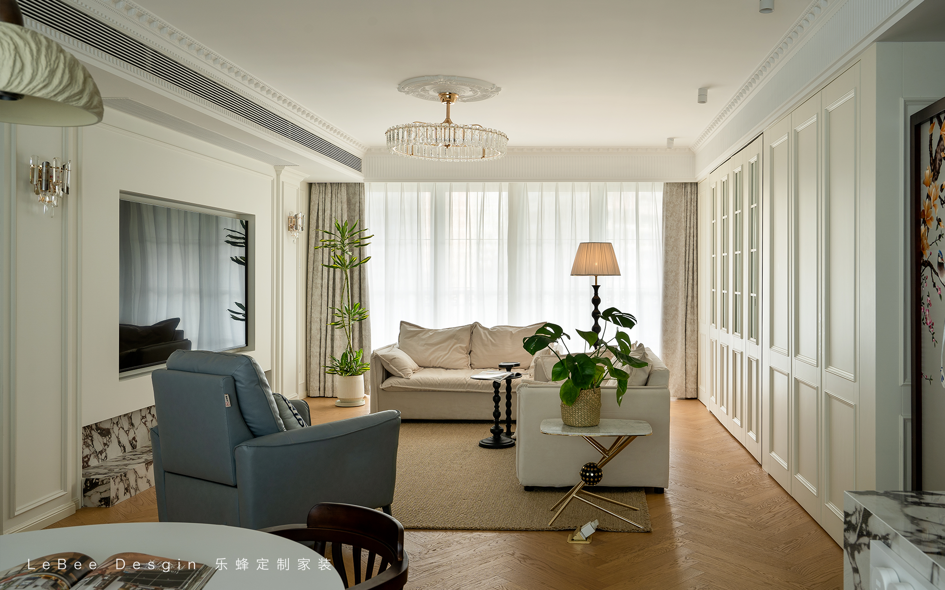 整體以輕法式為主,柔和的白色為主色調,搭配精致的線條裝飾營造出優雅、浪漫又不失溫馨的氛圍,同時簡化傳統法式的繁雜裝飾,更貼合現代生活需求。