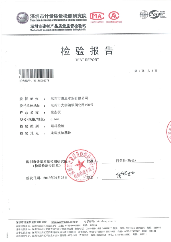 樂山木業要求全部采購材料必須符合環保標準,均要有檢測報告合格后才準入庫
